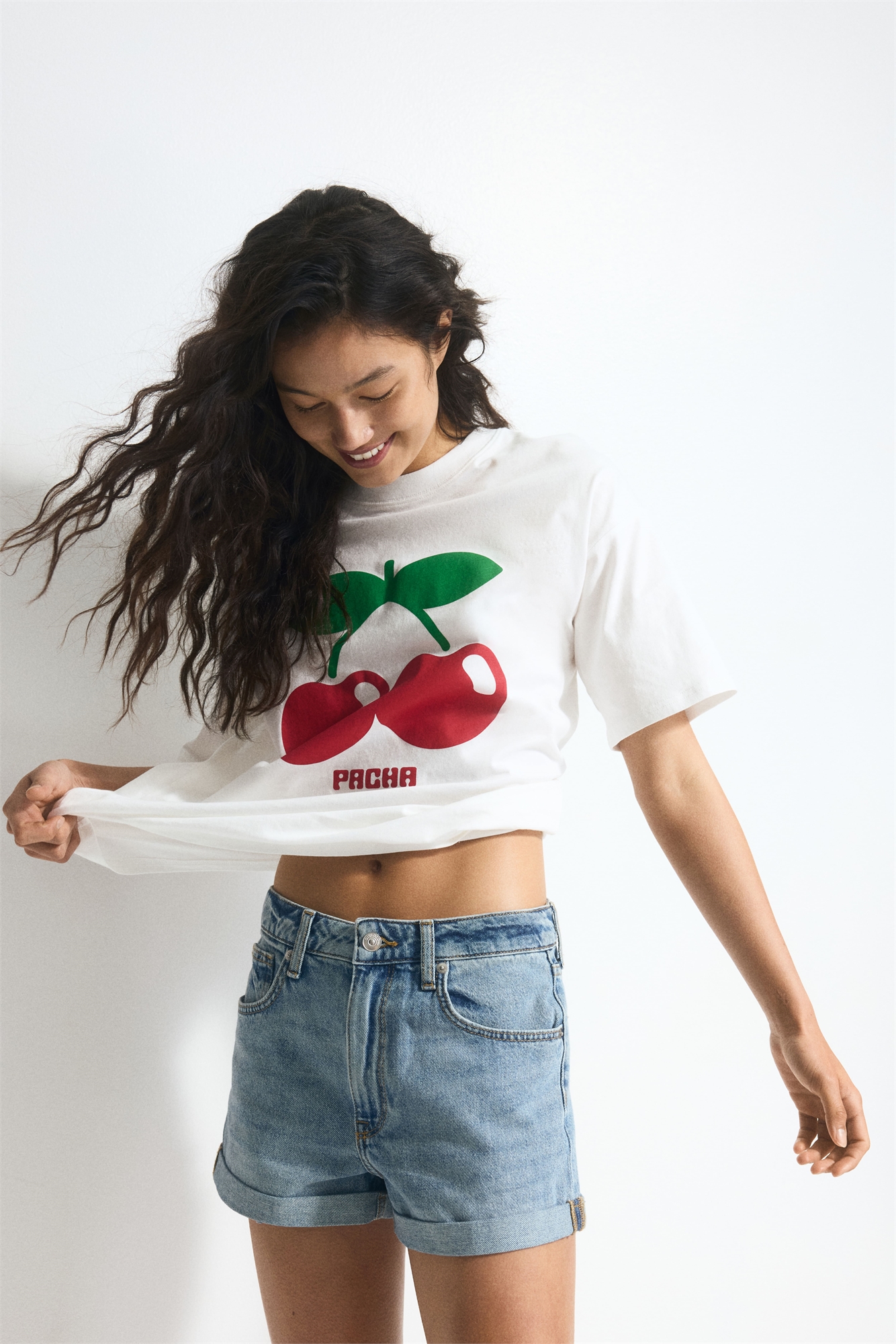 Шорты с 5 карманами из жесткого хлопкового денима с высокой талией, застежкой на молнию и пуговицу. Пришитые подвороты на подоле.