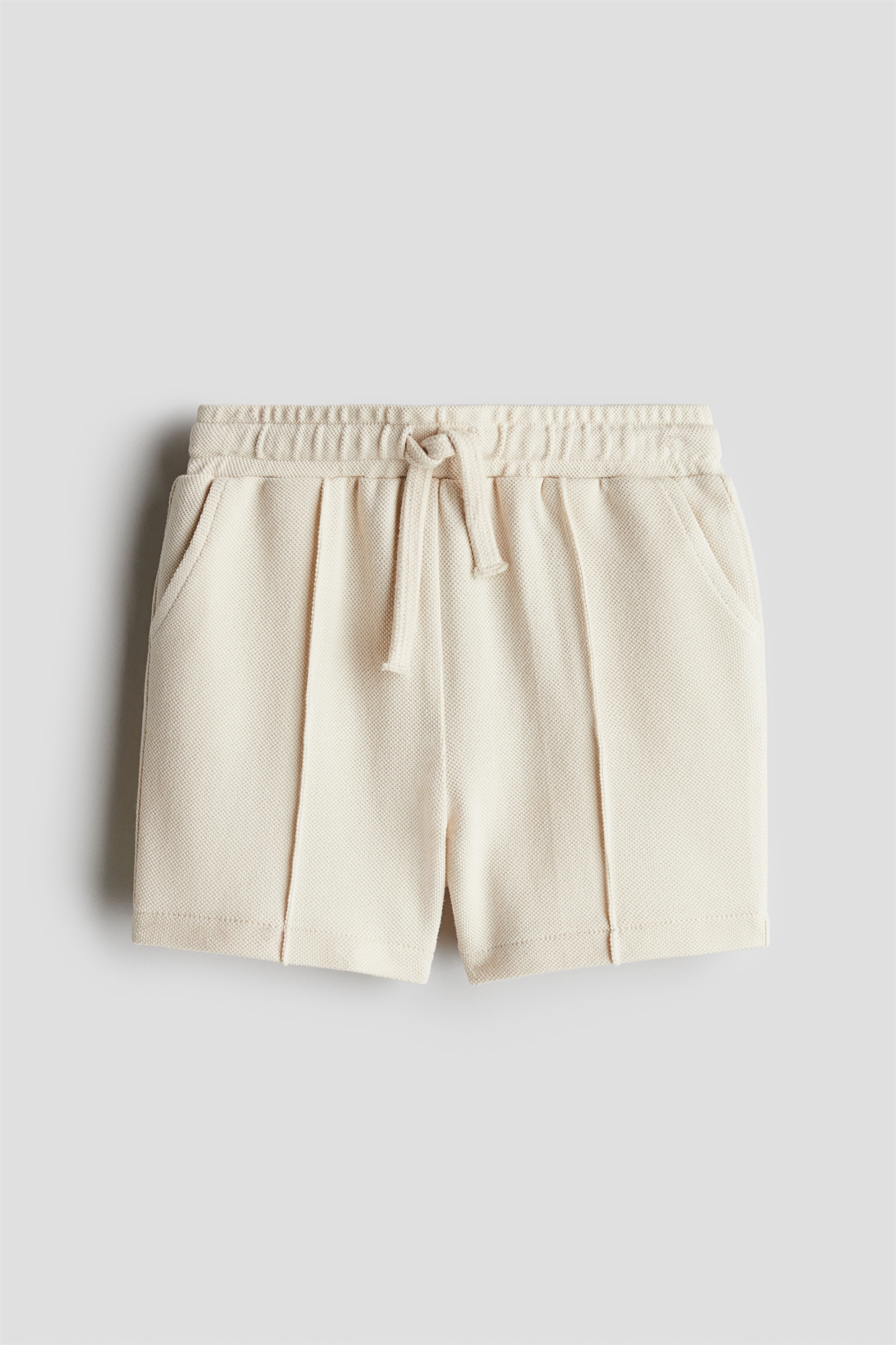 Шорты из мягкого пике, выполненные из смеси хлопка и модала. Эластичная талия с завязками, диагональные боковые карманы и застроченные складки спереди на ногах.