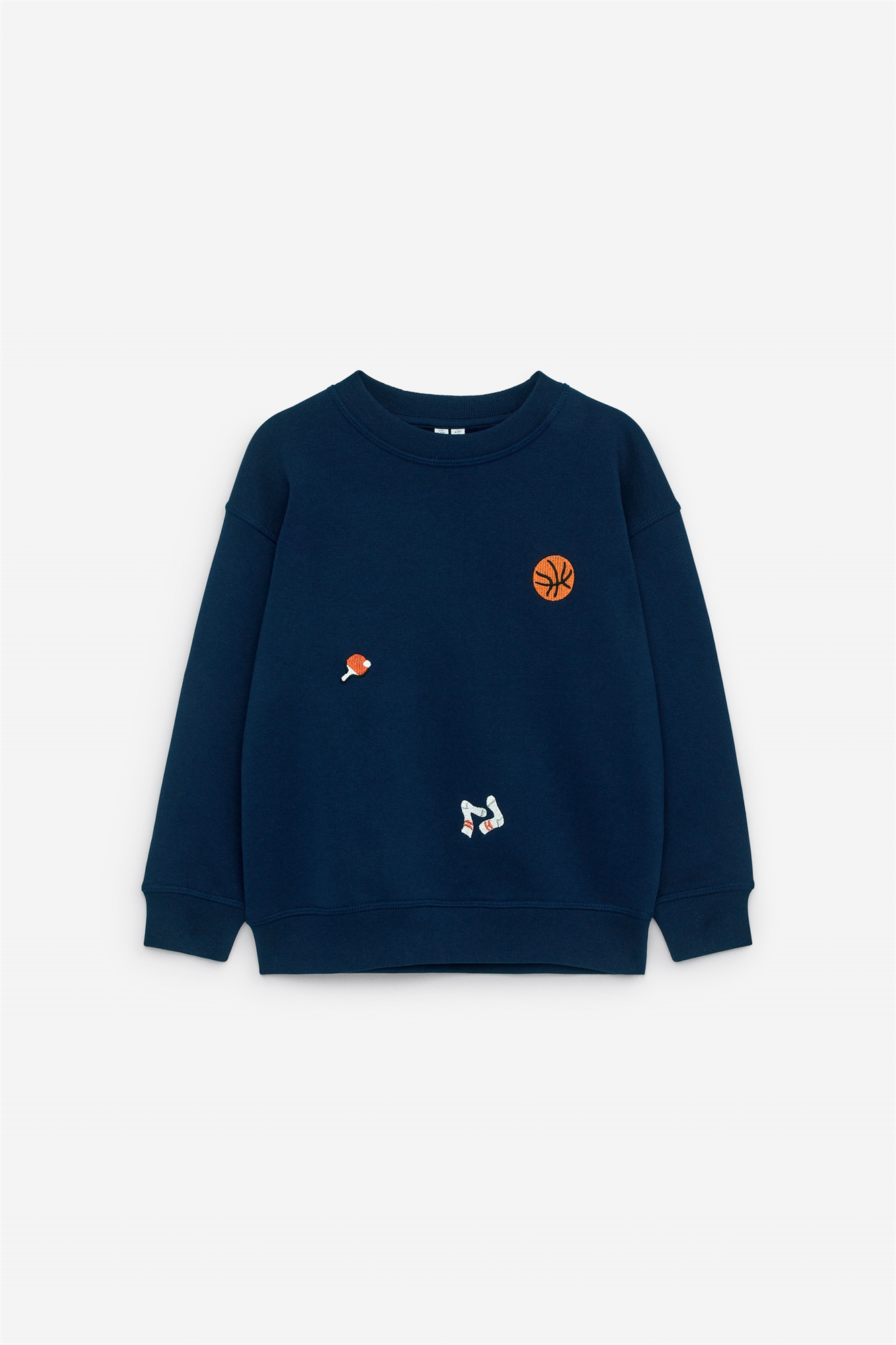 Толстовка из плотной хлопковой махры. Свободный крой с вырезом для экипажа и вышитые детали. Ребристая отделка.