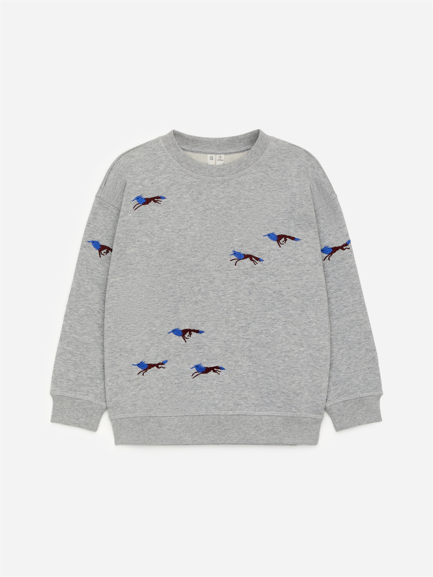 Толстовка из плотной хлопковой махры. Свободный крой с вырезом для экипажа и вышитые детали. Ребристая отделка.