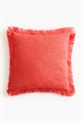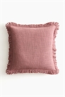 Чехол для подушки из хлопка с плетением slub, с бахромой по краям и потайной молнией сзади.