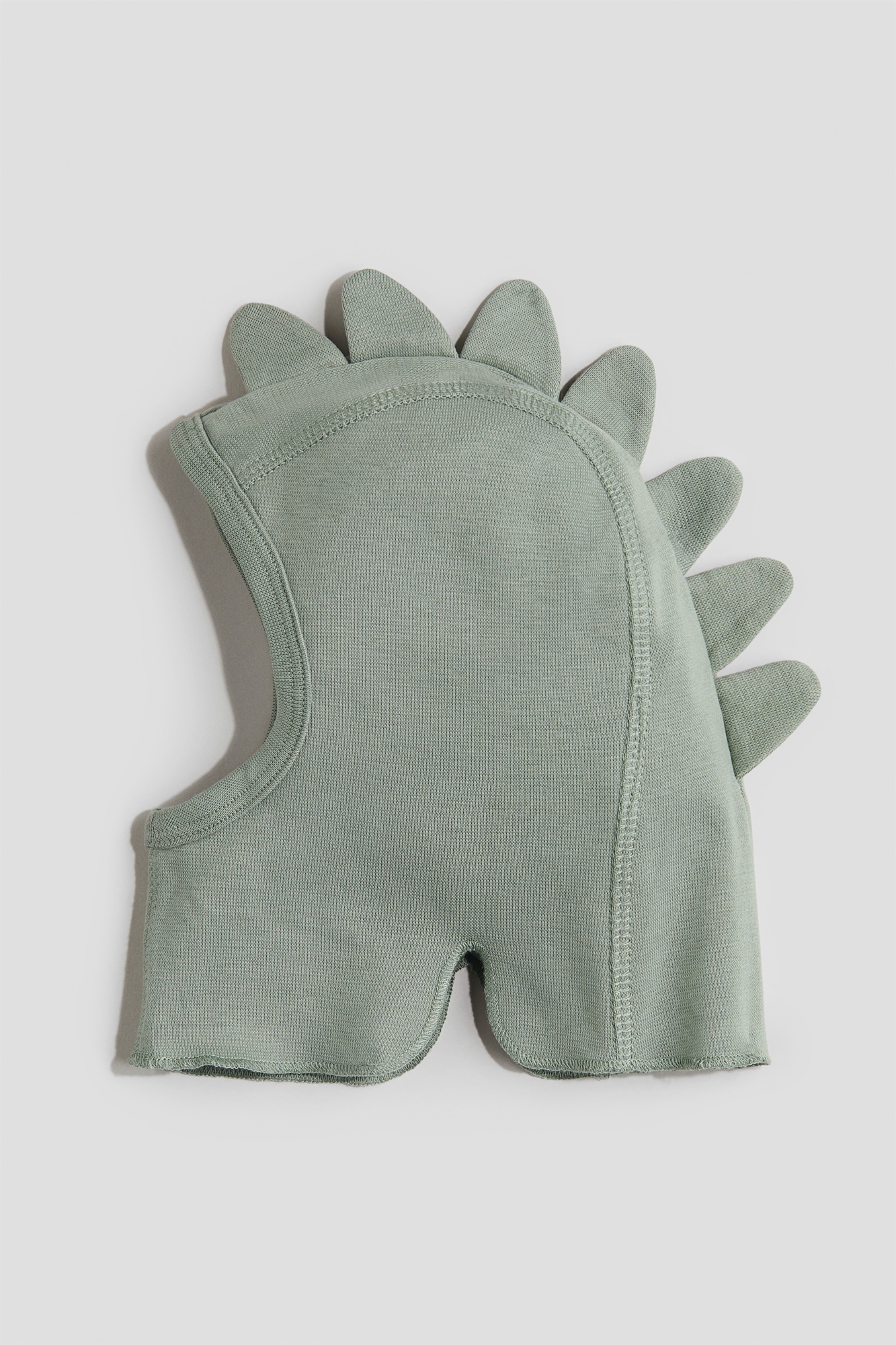 Балаклава из мягкого хлопкового трикотажа с аппликацией на верхней части и видимыми швами "флэтлок".
