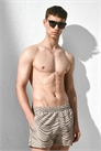 Шорты для плавания из узорчатого тканого материала с эластичным поясом, боковыми карманами и длиной до колена с небольшим разрезом сбоку. Внутренние шорты из мягкой сетки.
