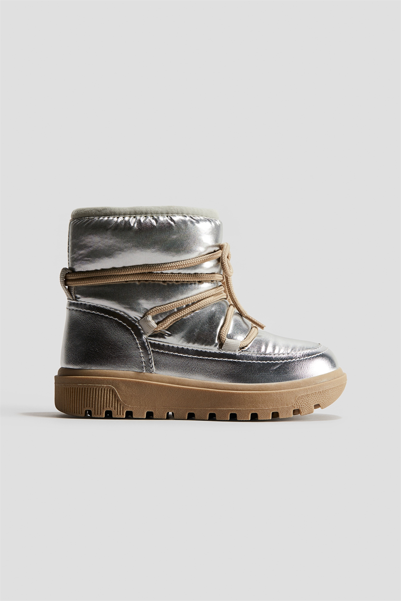 Снеговые ботинки со шнуровкой и застежкой-молнией с одной стороны. Теплая, пушистая подкладка и стелька из технической пены Cellfit™ для дополнительного комфорта. Мохнатая узорчатая подошва. Высота подошвы 3 см.