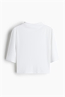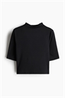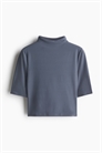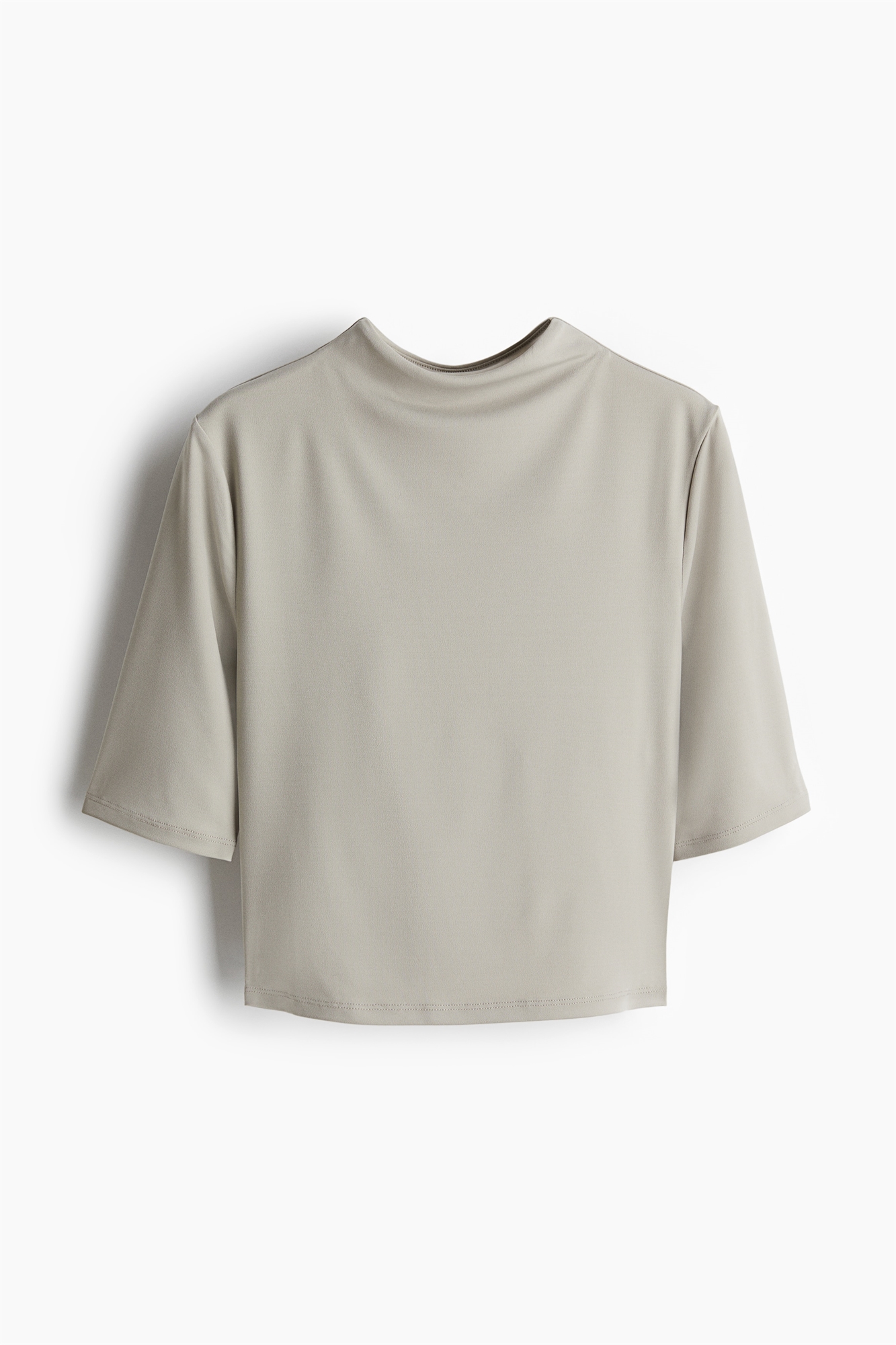 Короткий приталенный топ из мягкой микрофибры с черепаховой горловиной и рукавами длиной до локтя.