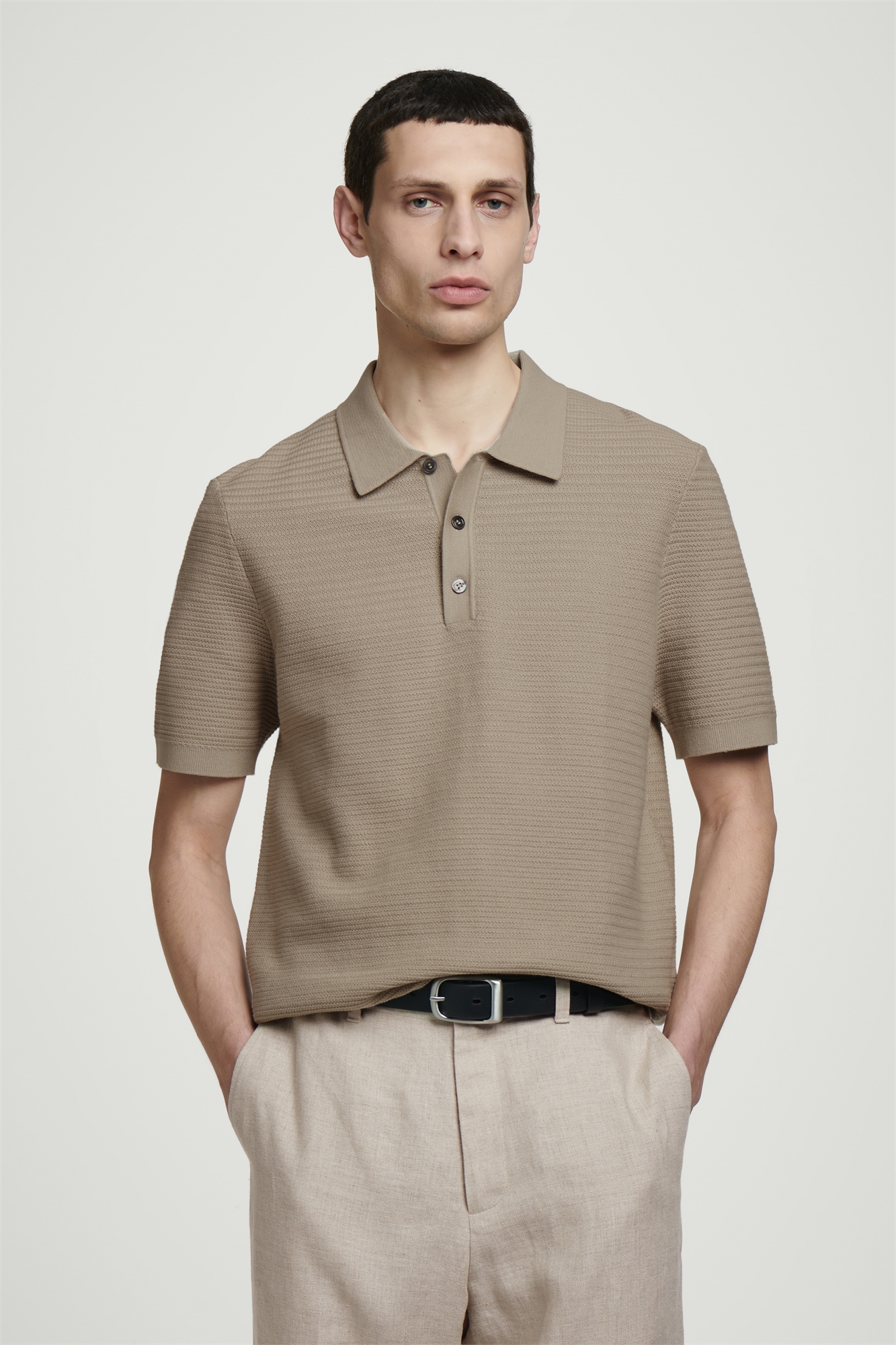 Эта современная рубашка-поло подходит для непринужденных образов, но при этом достаточно изысканна для более умных выходов в свет. Классический покрой, трикотаж из хлопка с фактурной строчкой, ребристый воротник, перламутровые пуговицы и короткие рукава. Приглушенный белый оттенок хорошо сочетается с джинсами или одеждой на заказ. Регулярный крой Застежка на пуговицы Материал: 100% хлопок. Без учета отделки / Машинная стирка Длина по спинке для размера M составляет 67 см / Модель носит размер M