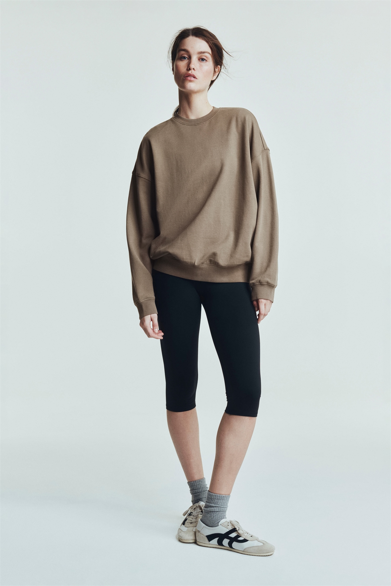 Спортивный топ из хлопковой толстовки средней плотности с круглым вырезом, спущенными плечами, длинными рукавами и окантовкой по вырезу, манжетам и подолу.