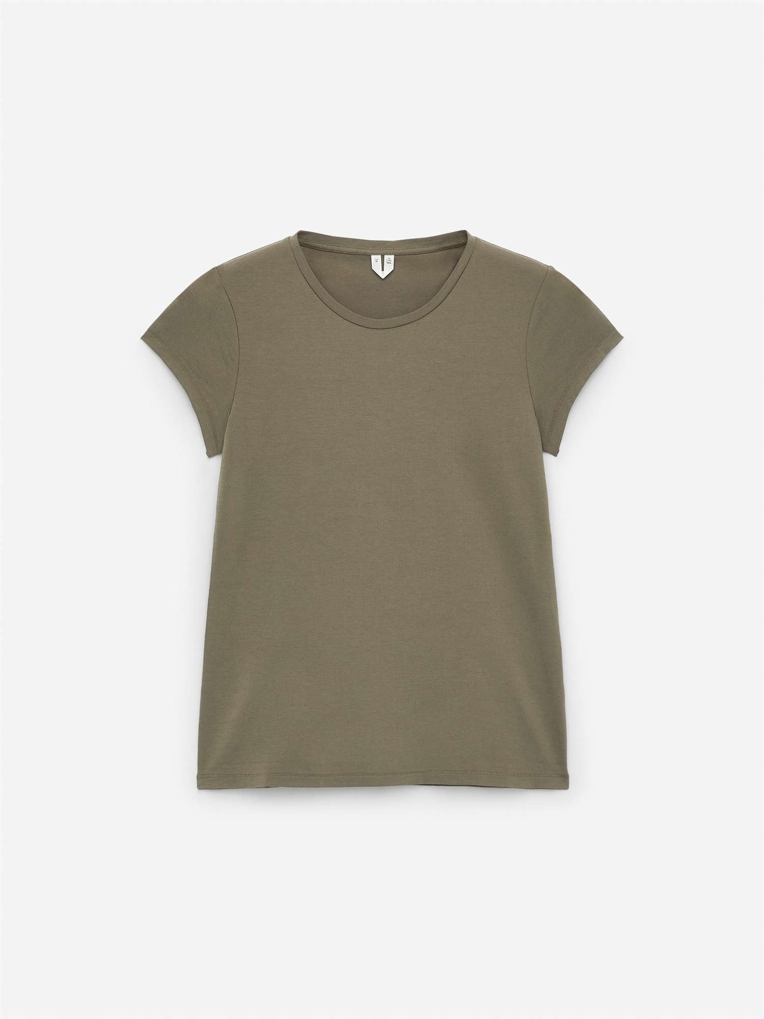 Футболка с объемными рукавами, выполненная из качественного джерси из хлопка supima и спандекса для эластичности. Облегающий крой.