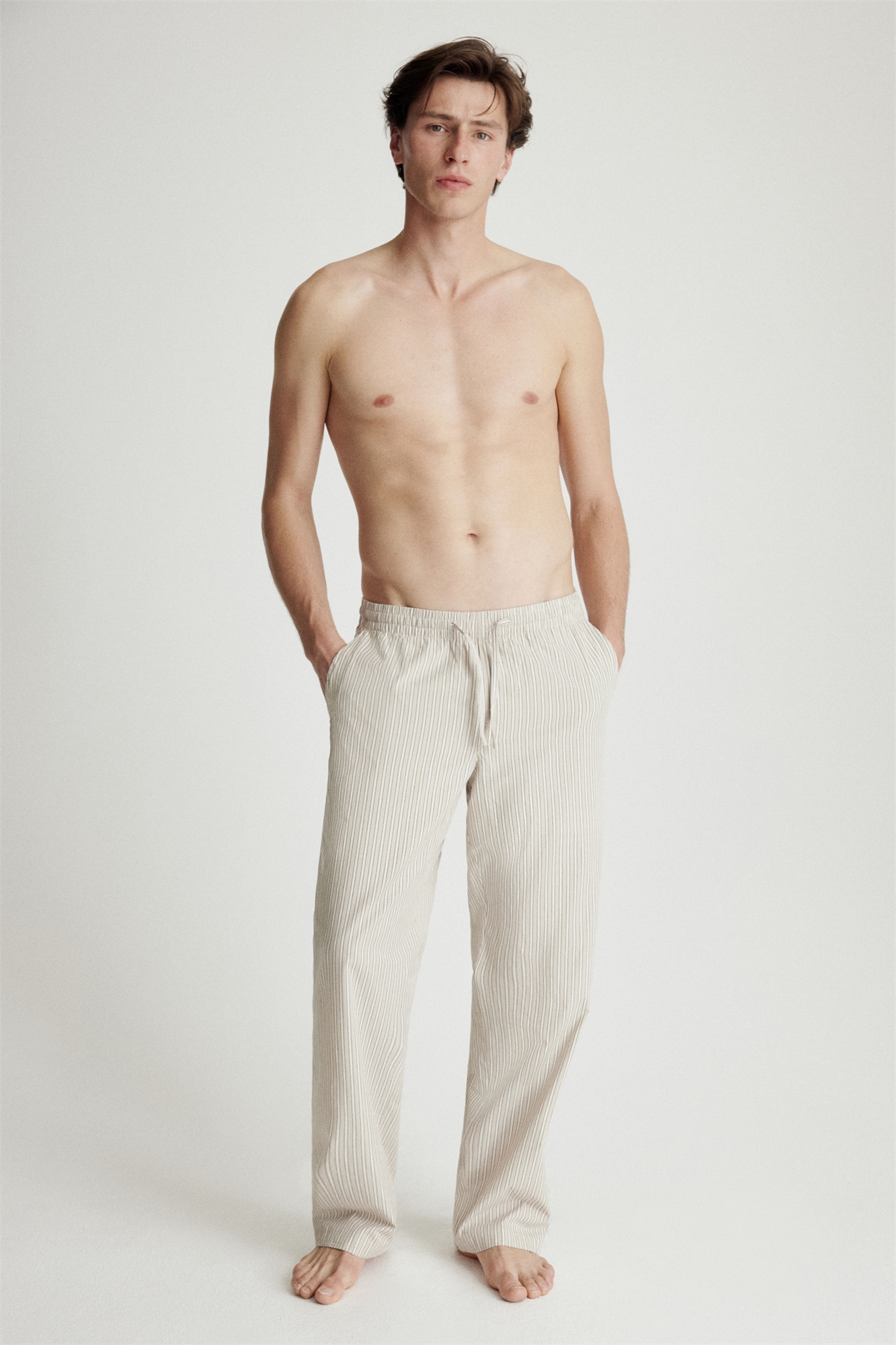 Брюки из хлопкового поплина с эластичной, утягивающейся талией, фальшивой ширинкой и боковыми карманами. Расслабленный крой для непринужденного, но не чрезмерного силуэта.
