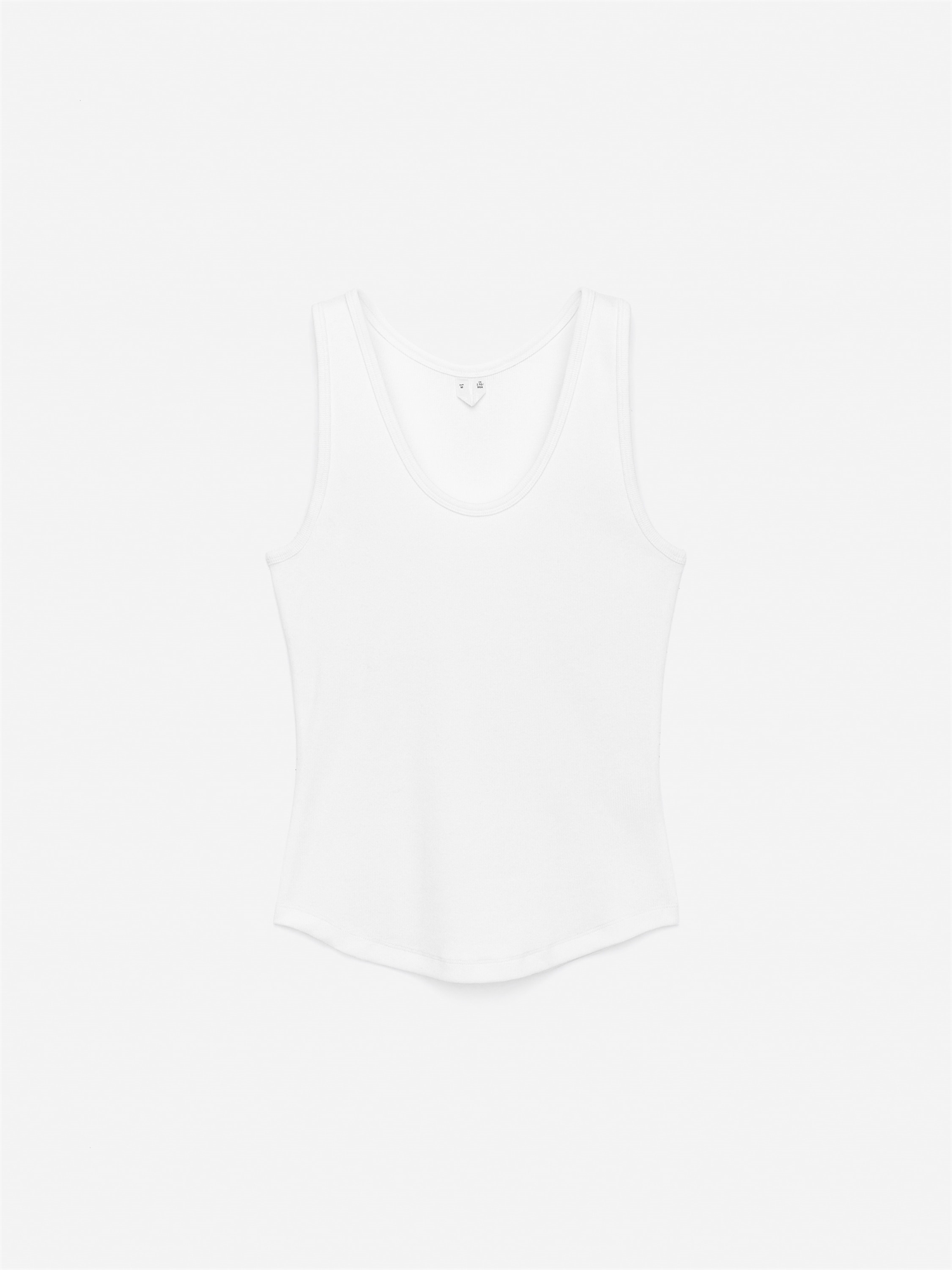 Трикотажная майка в рубчик с круглым вырезом, сшита из хлопка с добавлением эластана. Облегающий крой - Slim fit.
