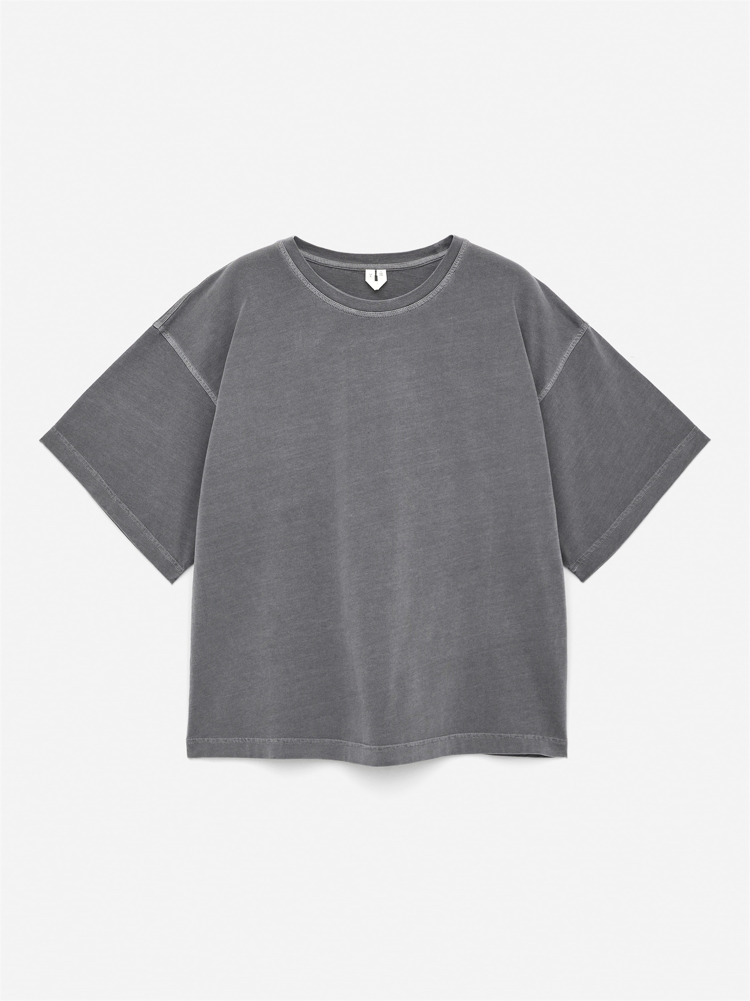 Хлопковая футболка с пигментным окрашиванием, короткими объемными рукавами и свободным кроем.