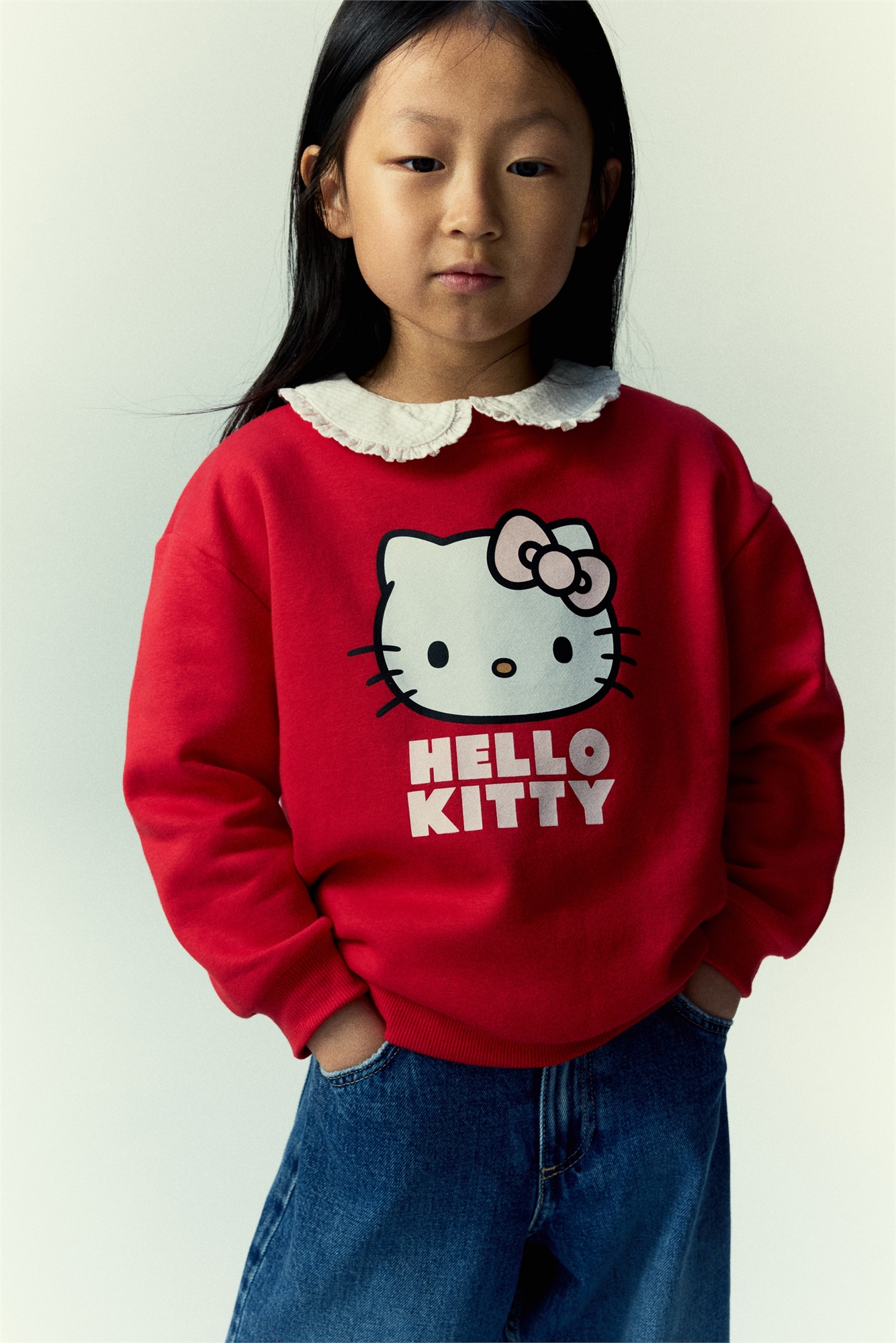 Топ из принтованной толстовки с мягким начесом внутри. Круглый вырез с ребристой отделкой и длинные объемные рукава. Ребристые манжеты и подол.