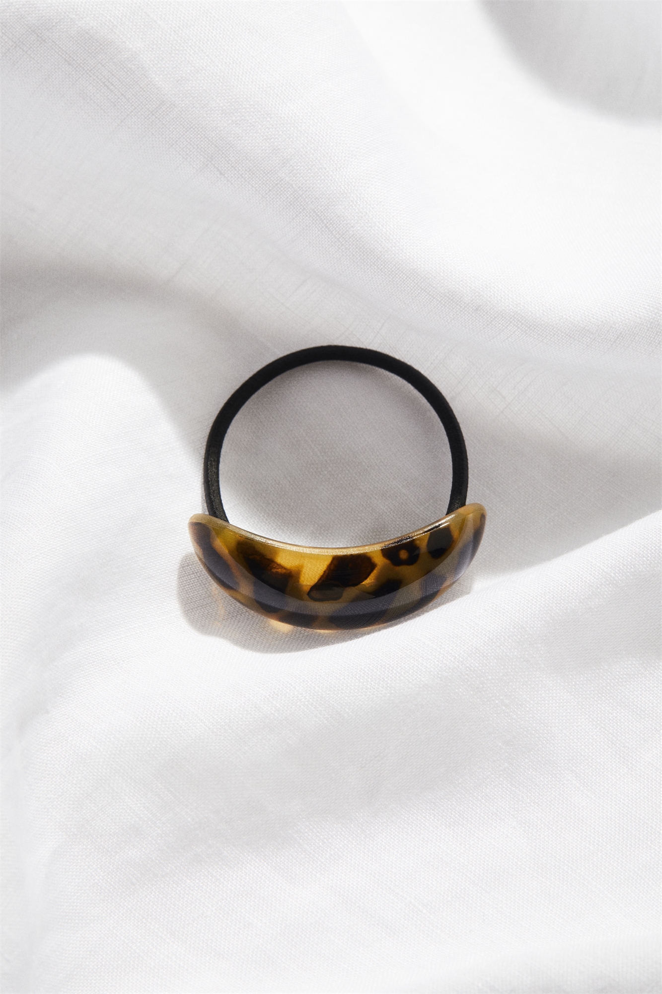 Резинка для волос с декоративной пластиковой деталью и глянцевой отделкой, которая украсит ваш хвост.
