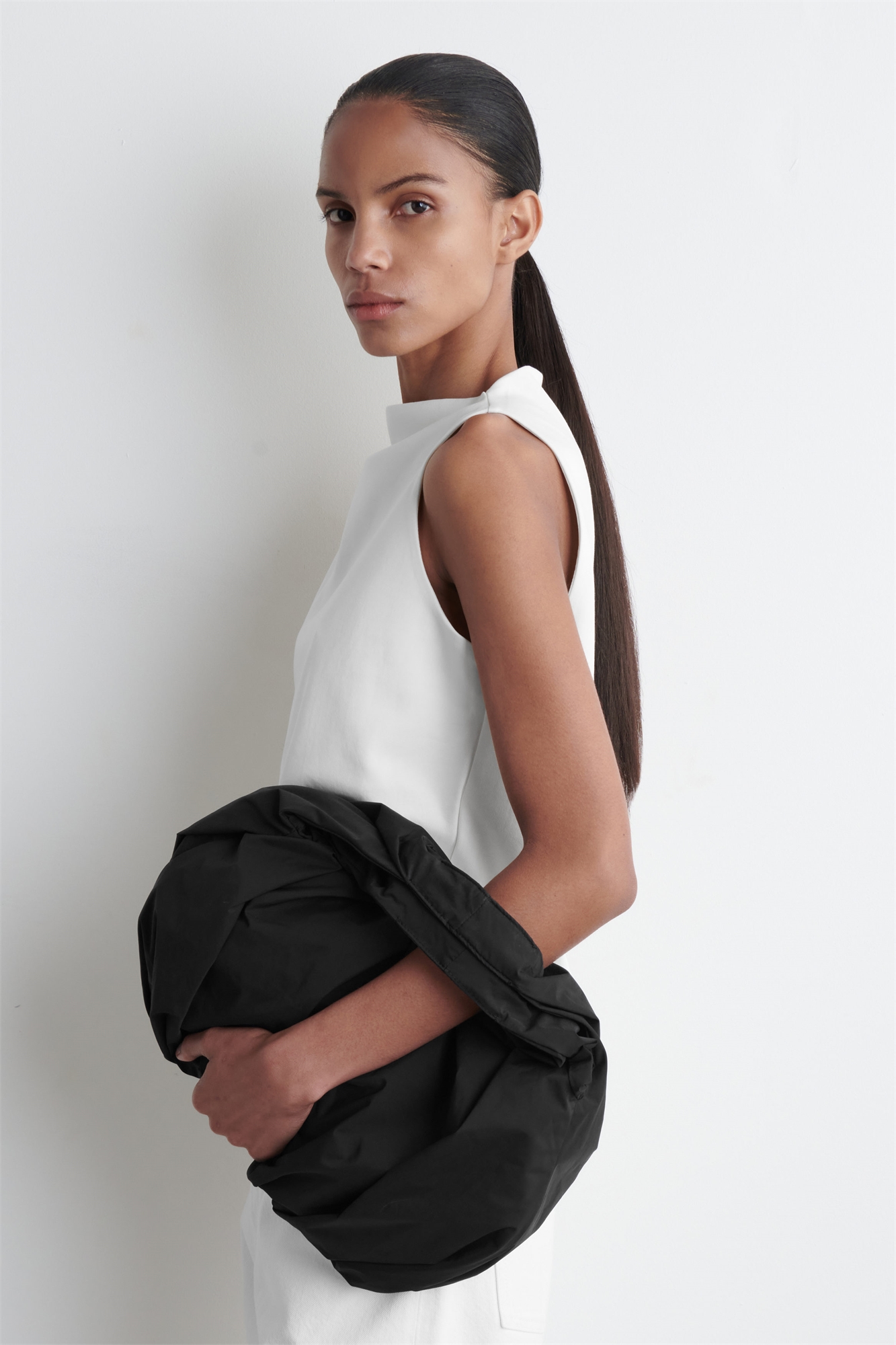 Названная так за свою объемную форму, сумка Cloud станет ярким дополнением к вашей коллекции аксессуаров. Уменьшенная до миниатюрных размеров, эта версия имеет тональный ремешок и пышный силуэт, собранный от основания. Внутренний карман на молнии позволяет держать мелкие предметы первой необходимости под рукой. Застежка-молния Лучшая альтернатива обычному полиэстеру, переработанный полиэстер изготавливается из отходов, полученных до и после переработки. Подкладка: 50% хлопок, 50% переработанный хлопок. Без учета отделки Высота: 36 см, ширина основания: 13 см