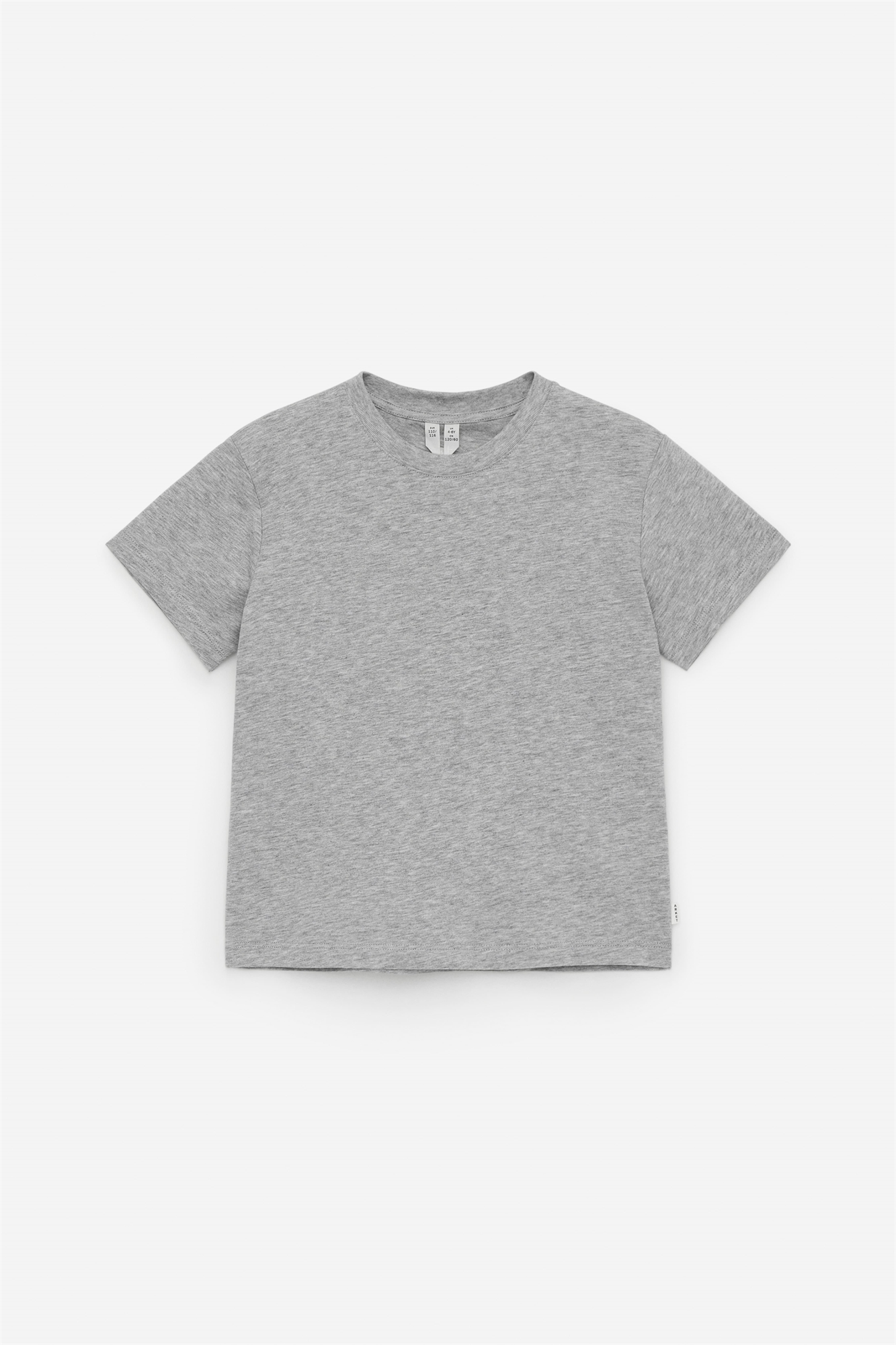 Футболка из хлопкового джерси средней плотности. Модель с вырезом для экипажа и обычным кроем.