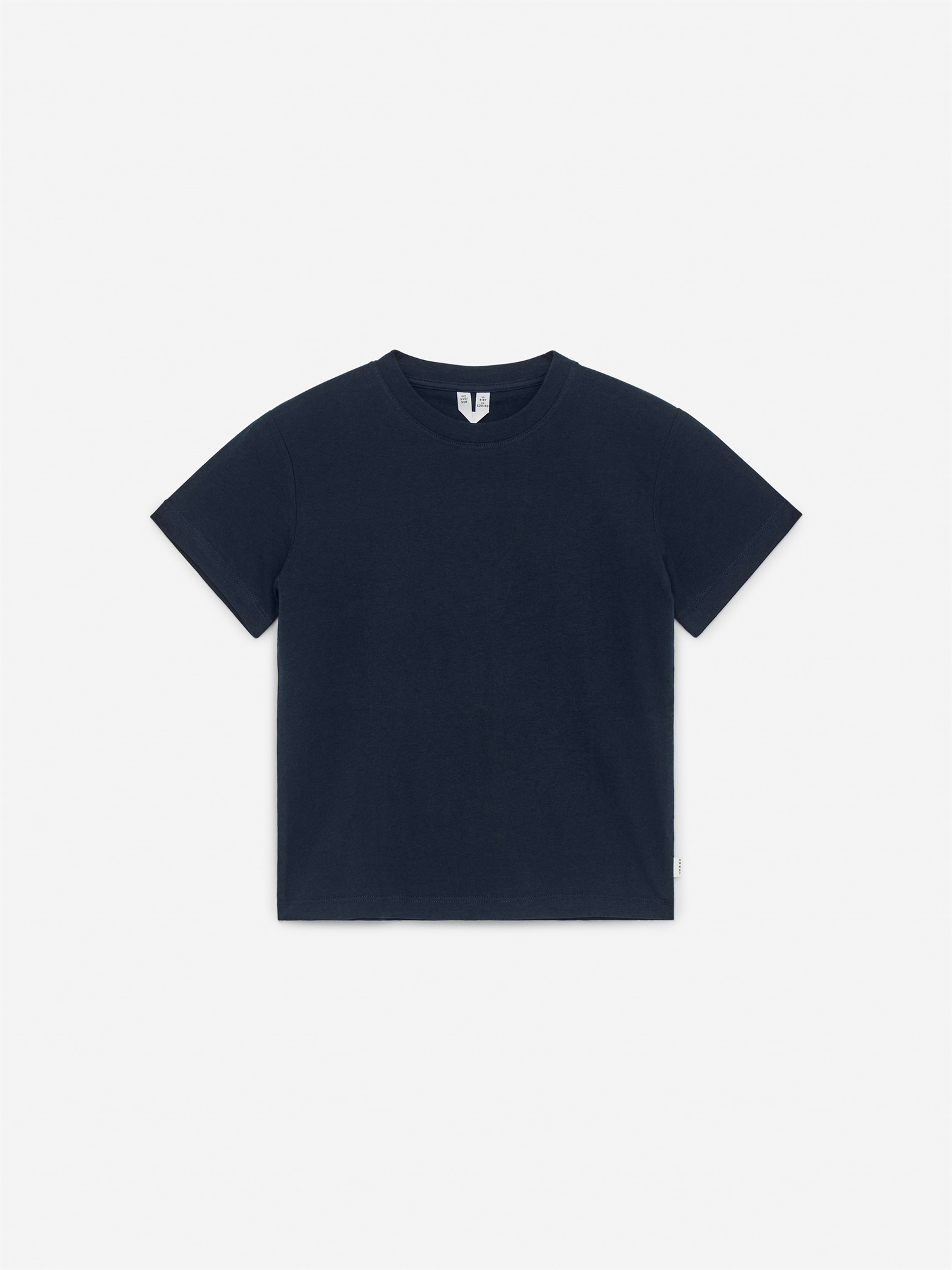 Футболка из хлопкового джерси средней плотности. Модель с вырезом для экипажа и обычным кроем.