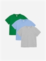 Футболка с круглым вырезом из хлопкового джерси средней плотности. Она имеет обычный крой и горловину. Продается в практичном наборе из трех штук.