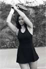 Короткое теннисное платье из функциональной ткани SoftMove™, которая обеспечивает максимальную мягкость и комфорт, а также поддержку контуров, и DryMove™, которая помогает отводить влагу от кожи. Облегающий крой с узким разрезом в верхней части и застежкой-молнией сзади. Расклешенная юбка с небольшим разрезом. Надета поверх джерси-комбинезона со встроенным бюстгальтером со съемными вставками, карманом для мяча на одной ноге и карманом для телефона на другой ноге.