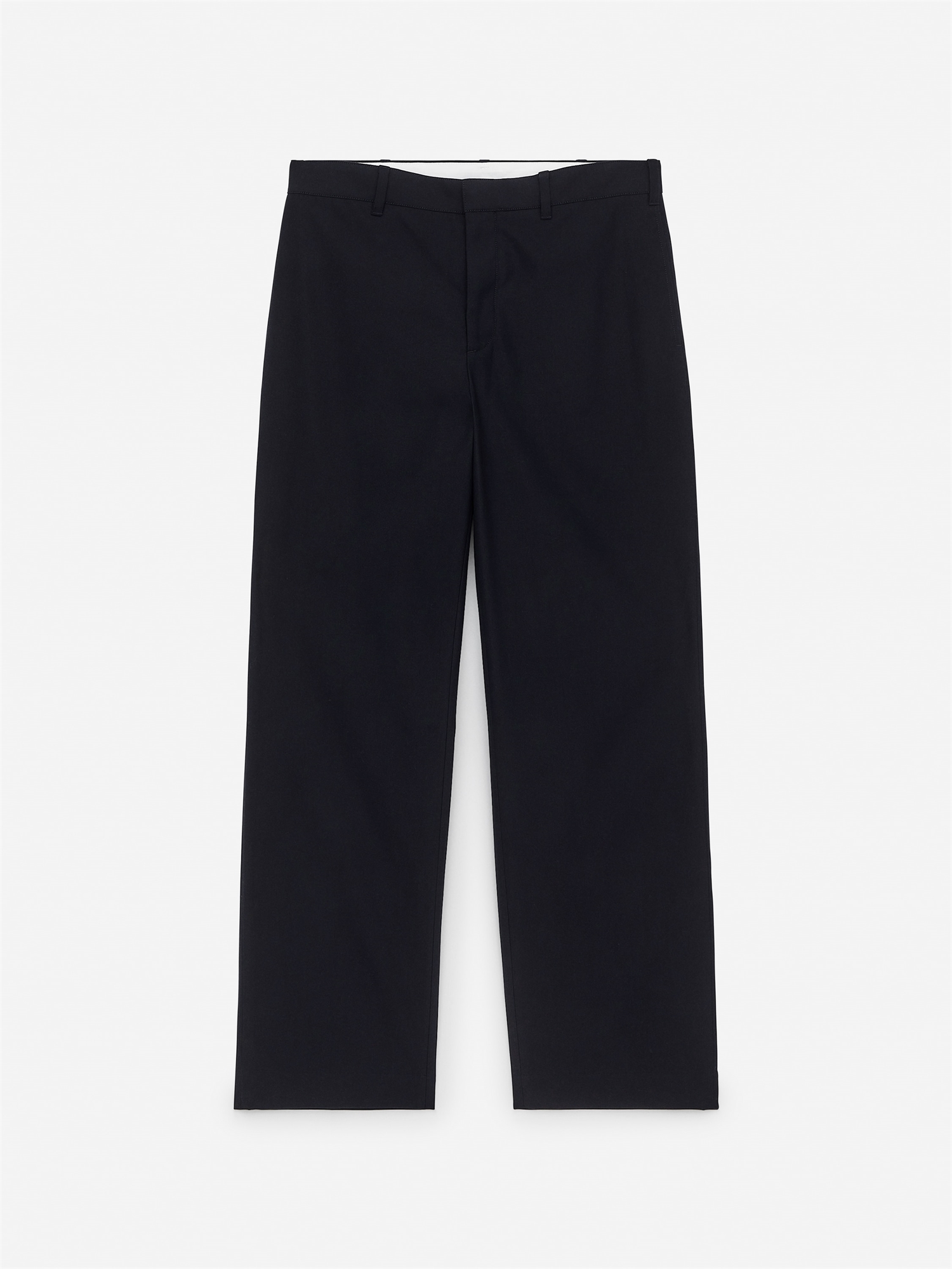 Брюки из смеси шерсти и хлопка. Модель имеет непринужденную посадку и прямой крой. Карманы в боковых швах и накладные карманы сзади. Пояс на талии с петлями для ремня и застежкой на крючок и планку. Ширинка на молнии. Изделие содержит 64% шерсти RWS (TE-00047206). Изделия, сертифицированные по стандарту ответственной шерсти (RWS), содержат шерстяное волокно с ферм, прошедших независимую сертификацию на соответствие требованиям по благополучию животных и землепользованию.