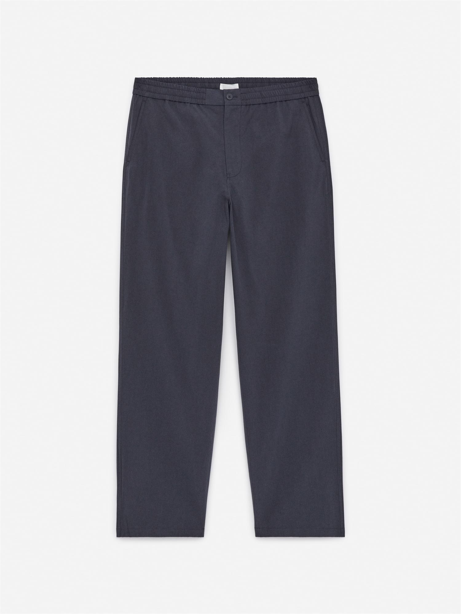 Хлопковые брюки с эластичным утягивающим поясом. Застежка на молнию и пуговицу. Регулярный крой и прямые штанины. Косые передние карманы и накладные задние карманы.