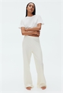 Брюки из мягкого трикотажа букле с эластичным поясом на талии и прямыми штанинами.