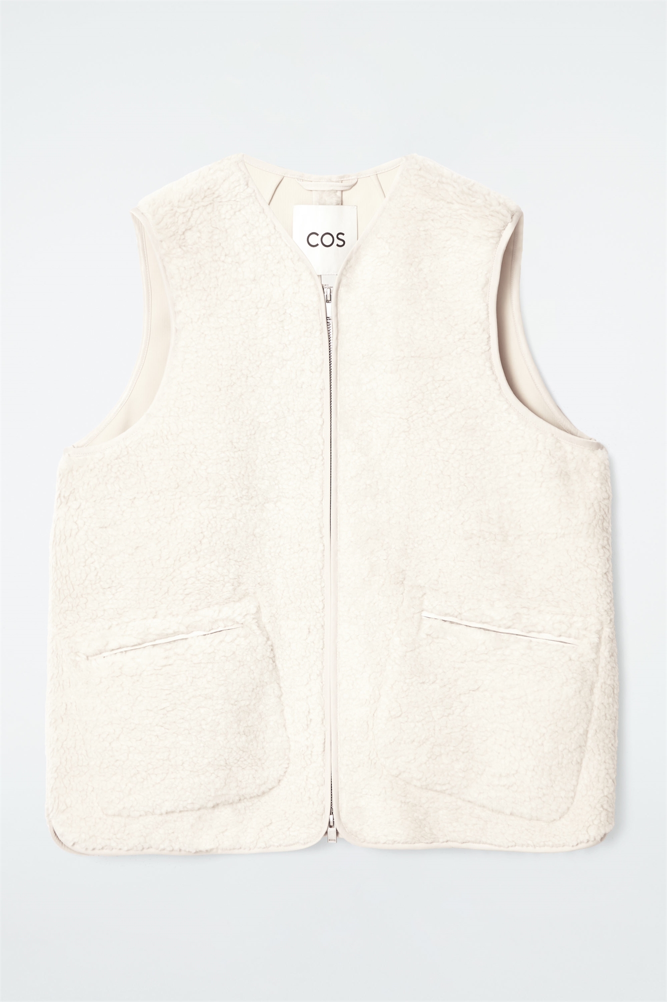 Эта жилетка из искусственной овчины - образец уюта и изысканности для осенне-зимнего сезона. Выполненная в мягком цвете слоновой кости, она имеет V-образный вырез и передние карманы, в которые можно положить руки. Модель выполнена в форме оверсайз и отделана гладкой подкладкой и тональным переплетом. Oversized fit Застежка-молния Лучшая альтернатива обычному полиэстеру, переработанный полиэстер изготавливается из отходов до и после переработки: 100% переработанный полиэстер. Без учета отделки / Сухая чистка Длина по спинке для размера S составляет 64,1 см / Модель носит размер S