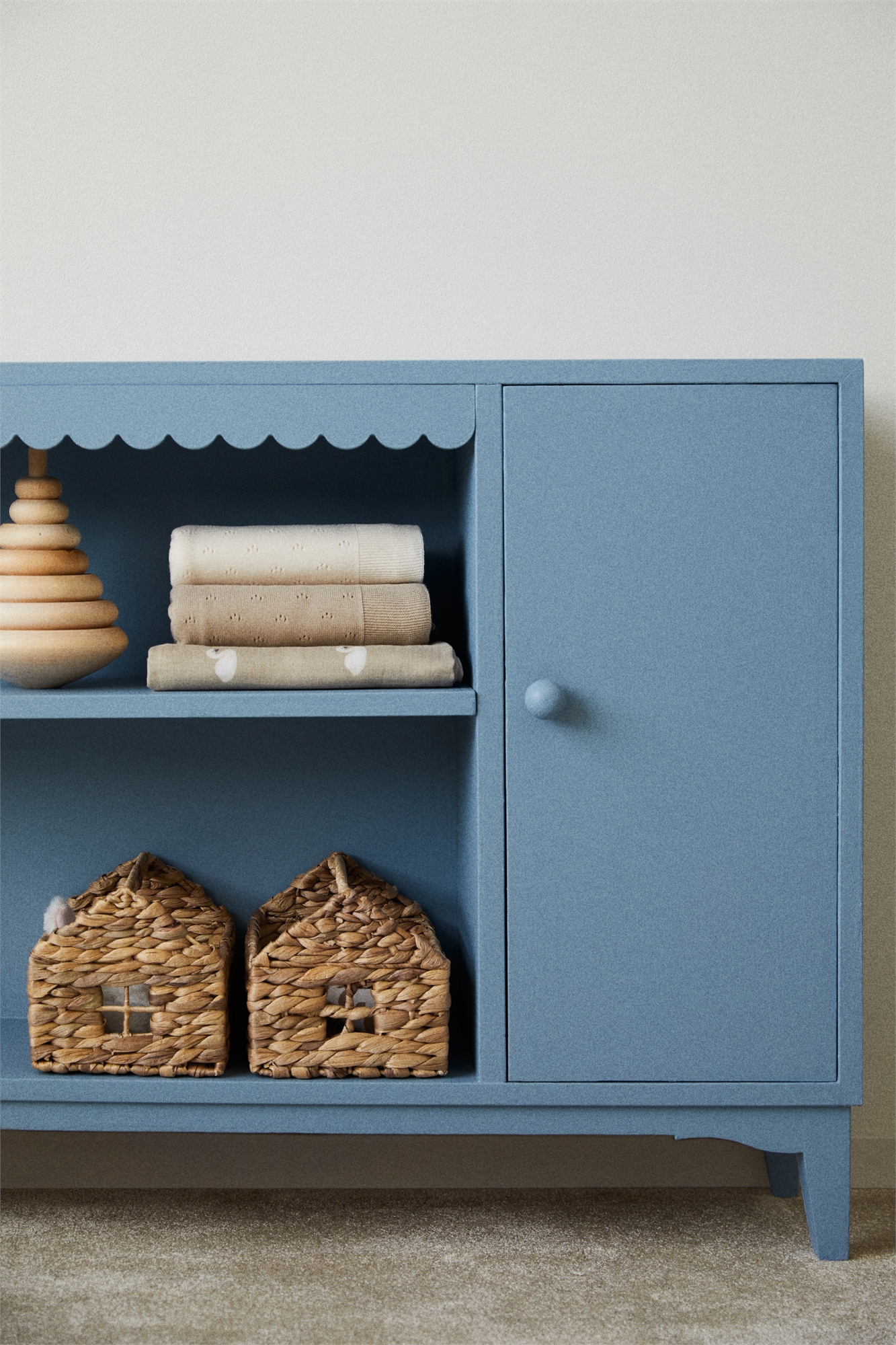 Небольшая корзина для хранения из плетеной соломы с плетеной ручкой наверху. Это новый дом для игрушек вашего ребенка с маленьким окошком, чтобы они могли выглянуть.