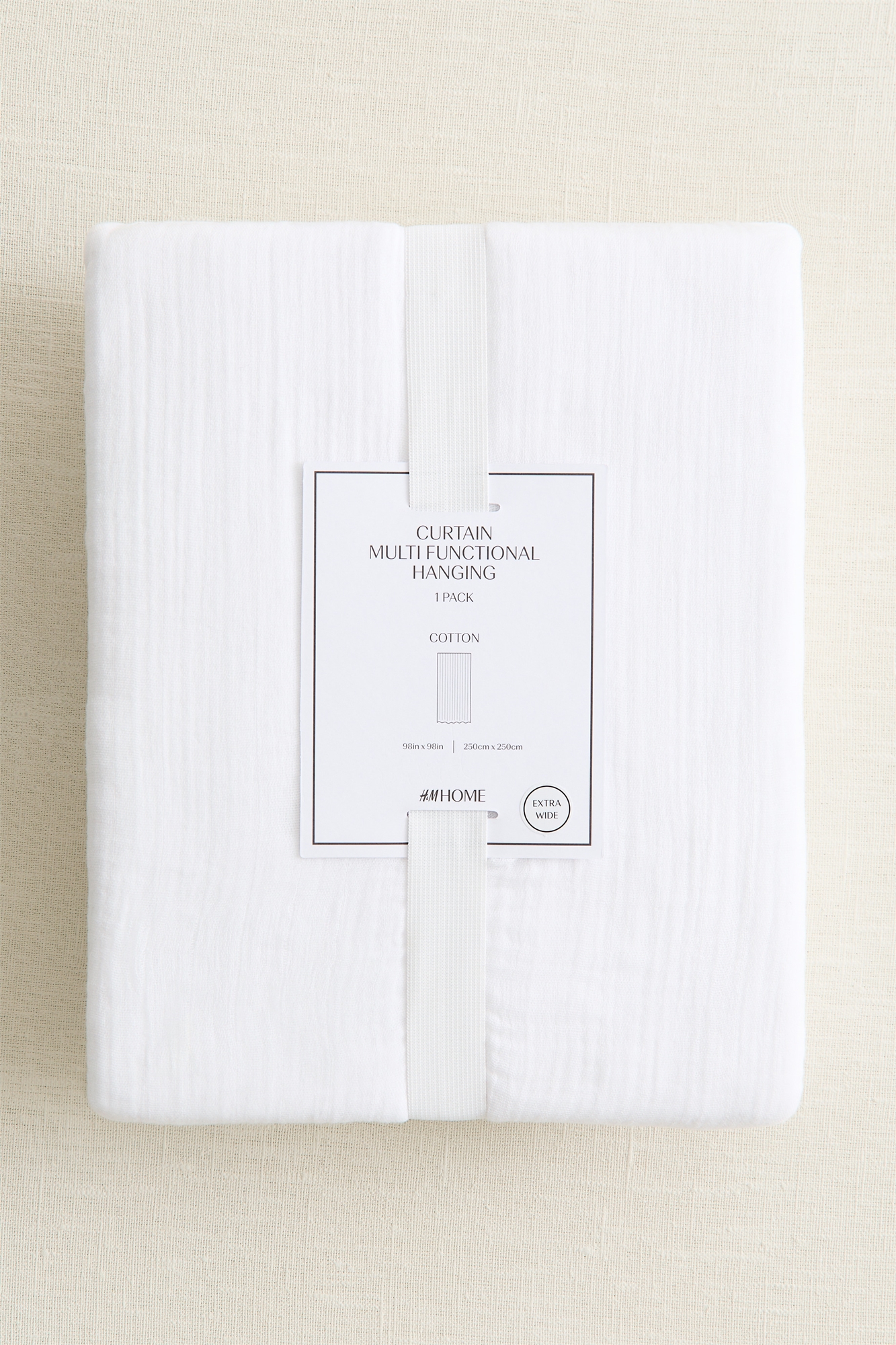 Широкая штора из мягко драпирующегося полупрозрачного хлопкового муслина с многоходовым подхватом. Многоходовой подхват на шторах позволяет подвешивать их в разных стилях, что делает их подходящими для различных штанг или карнизов и позволяет легко менять внешний вид штор. Эти шторы пропускают свет в комнату, обеспечивая при этом приватность. Крючки в комплект не входят. Окантованные.