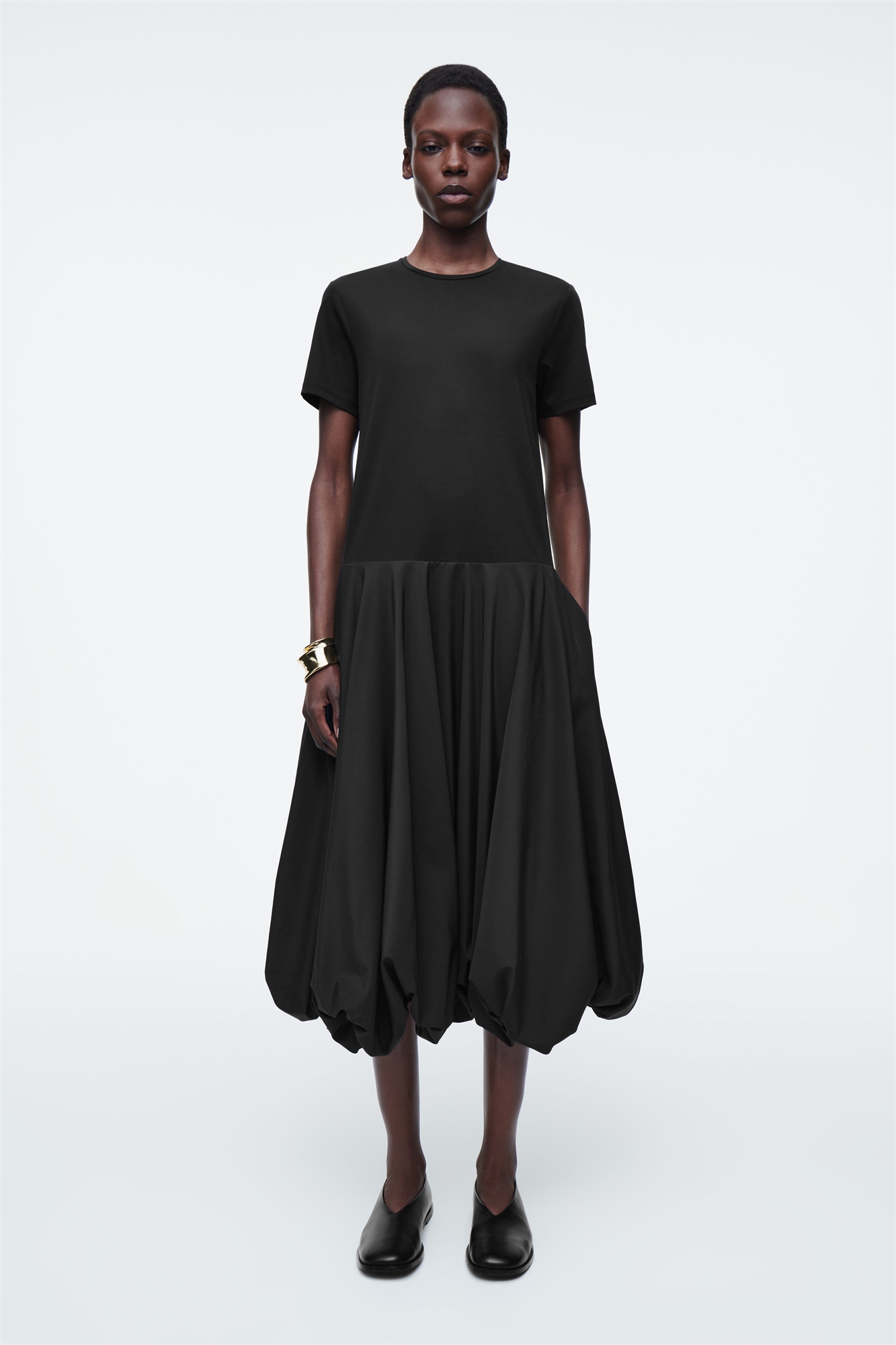 Команда женской одежды переосмыслила платье-футболку через призму 80-х для сезона весна-лето 2025. Играя с текстурой, эта модель состоит из мягкой футболки из хлопкового джерси и тонко контрастирующей тканой юбки. Модель имеет горловину, короткие рукава и объемный подол-баллон. Регулярный крой Карманы в боковых швах Лучшая альтернатива обычному полиэстеру, переработанный полиэстер изготавливается из отходов, полученных до и после переработки Верх: 88% хлопка, 12% эластана. Низ: 100% переработанный полиэстер. Без учета отделки / Машинная стирка Длина по спинке для размера S составляет 112,7 см / Модель носит размер S