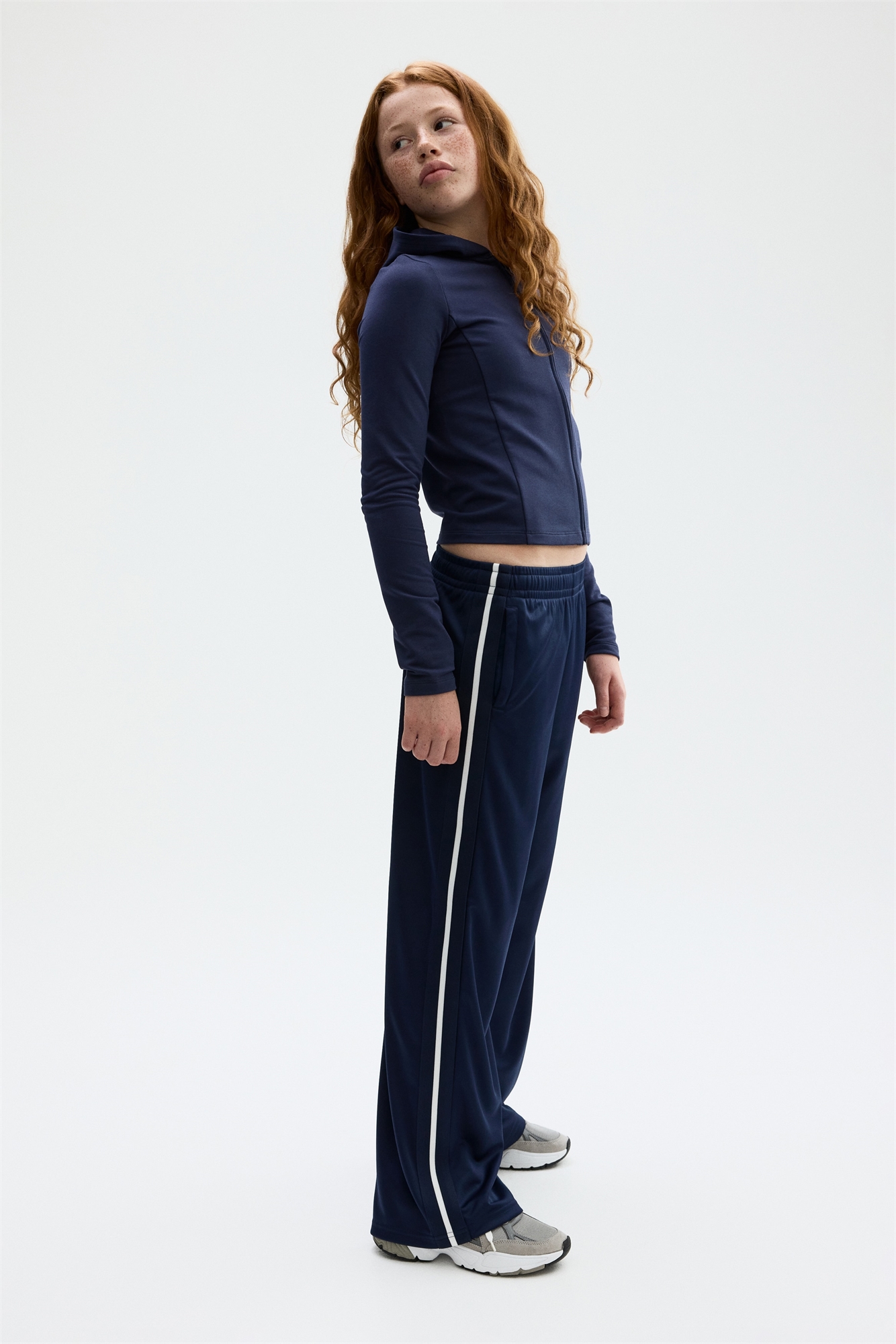 Спортивные брюки из функциональной ткани DryMove™, которая отводит влагу от кожи, обеспечивая комфортную сухость во время движения. Свободный крой с эластичной отделкой и потайным шнурком на талии, незаметные боковые карманы и боковые полоски акцентного цвета.