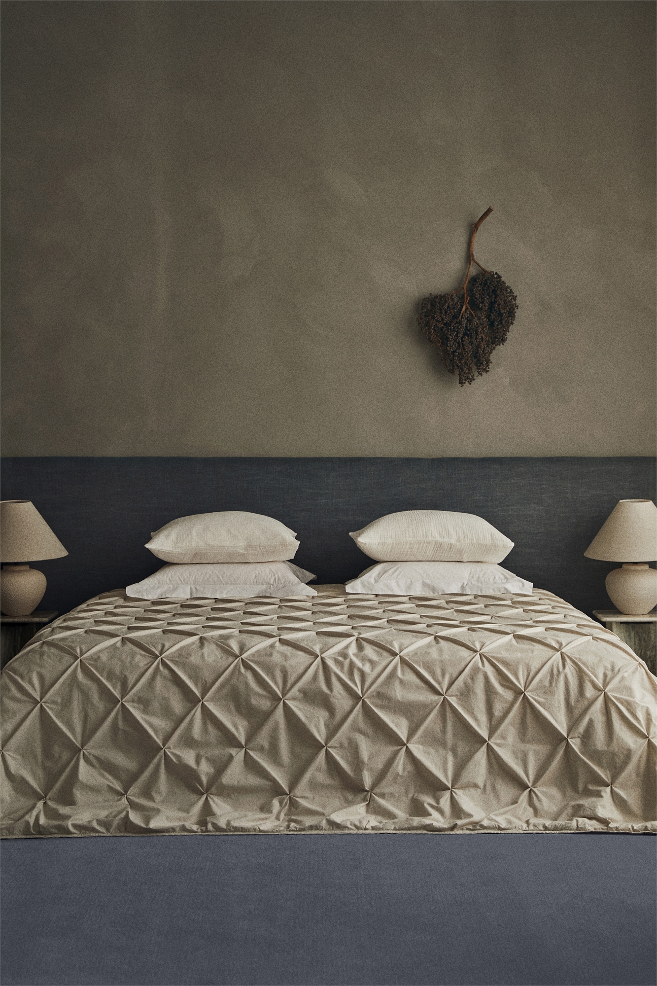 Покрывало из хлопчатобумажной смеси с пинтами, образующими элегантный ромбовидный узор.
