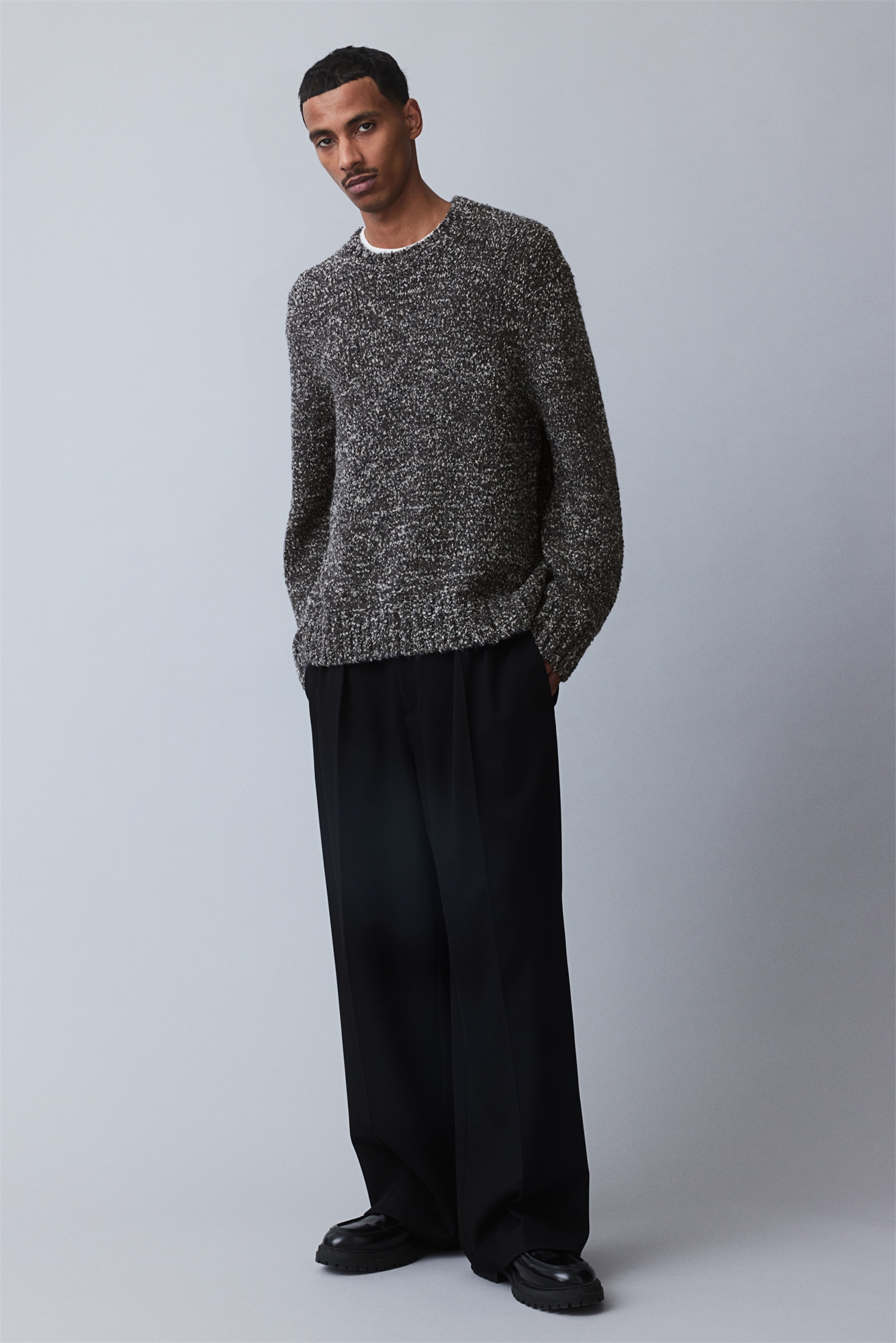 Джемпер из мягкого трикотажа букле из шерстяной смеси с круглым вырезом и длинными рукавами. Окантовка вокруг выреза, на манжетах и подоле. Регулярный крой для комфортной носки и классического силуэта.