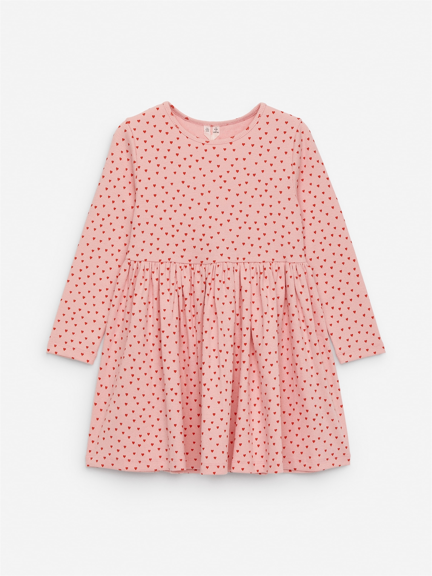 Трикотажное платье в рубчик из хлопка с добавлением эластана. Модель с длинными рукавами и сборками на талии.