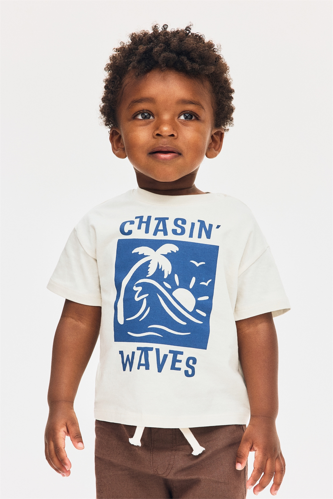 Футболка из мягкого хлопкового джерси с принтом. Круглый вырез с ребристой отделкой, застежка с одной стороны (кроме размеров 2-4Y) и спущенные плечи.