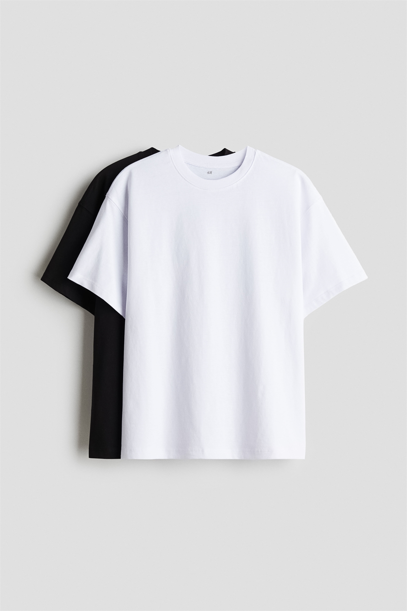 Футболки оверсайз из мягкого хлопкового джерси с круглым вырезом в рубчик и спущенными плечами.
