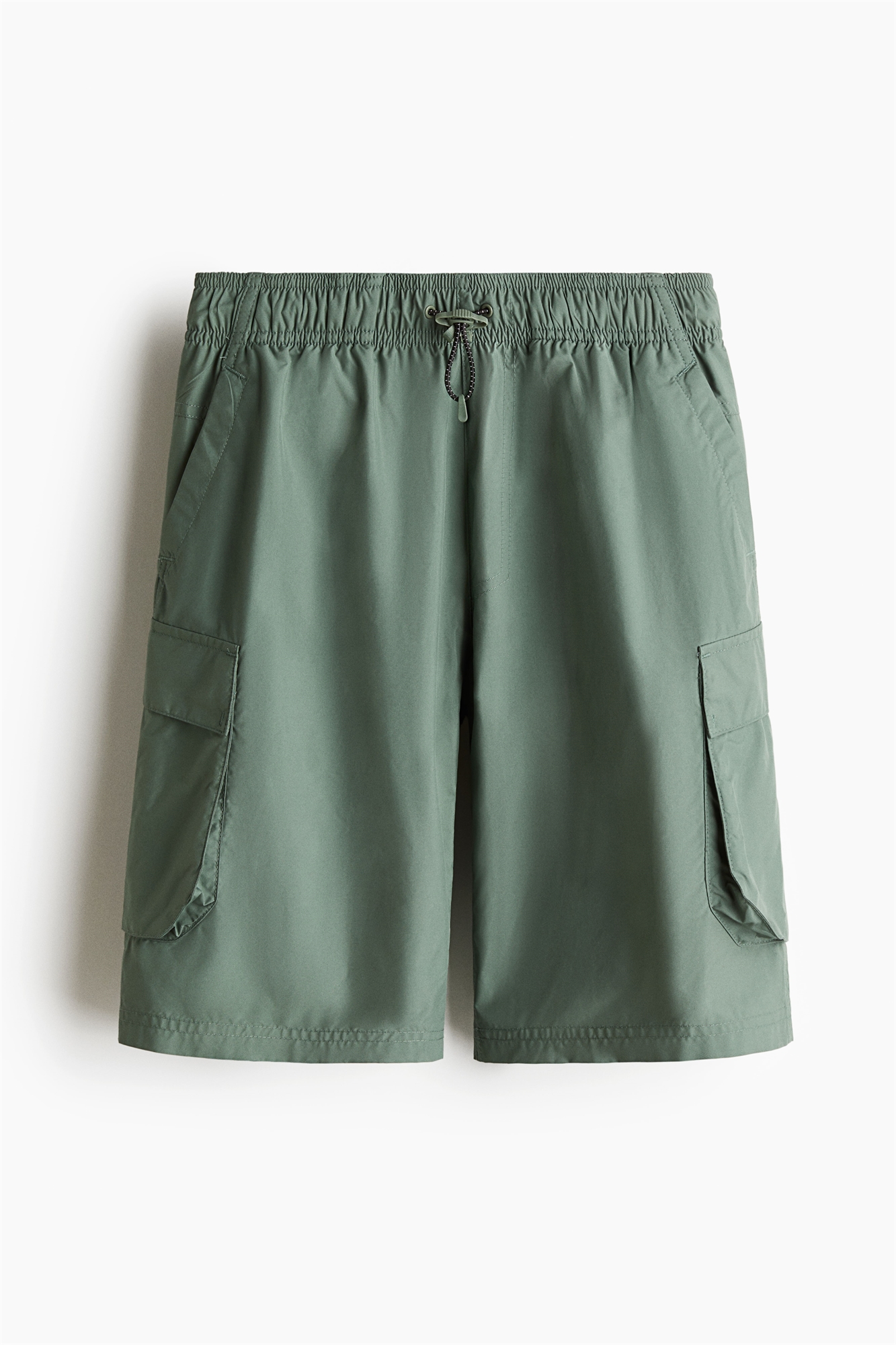 Длинные шорты-карго свободного покроя из мягкой ткани с эластичным покрытием и эластичным шнурком на талии. Фальшивая ширинка, диагональные боковые карманы, фальшивый задний карман и два втачных кармана на ногах.