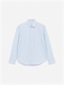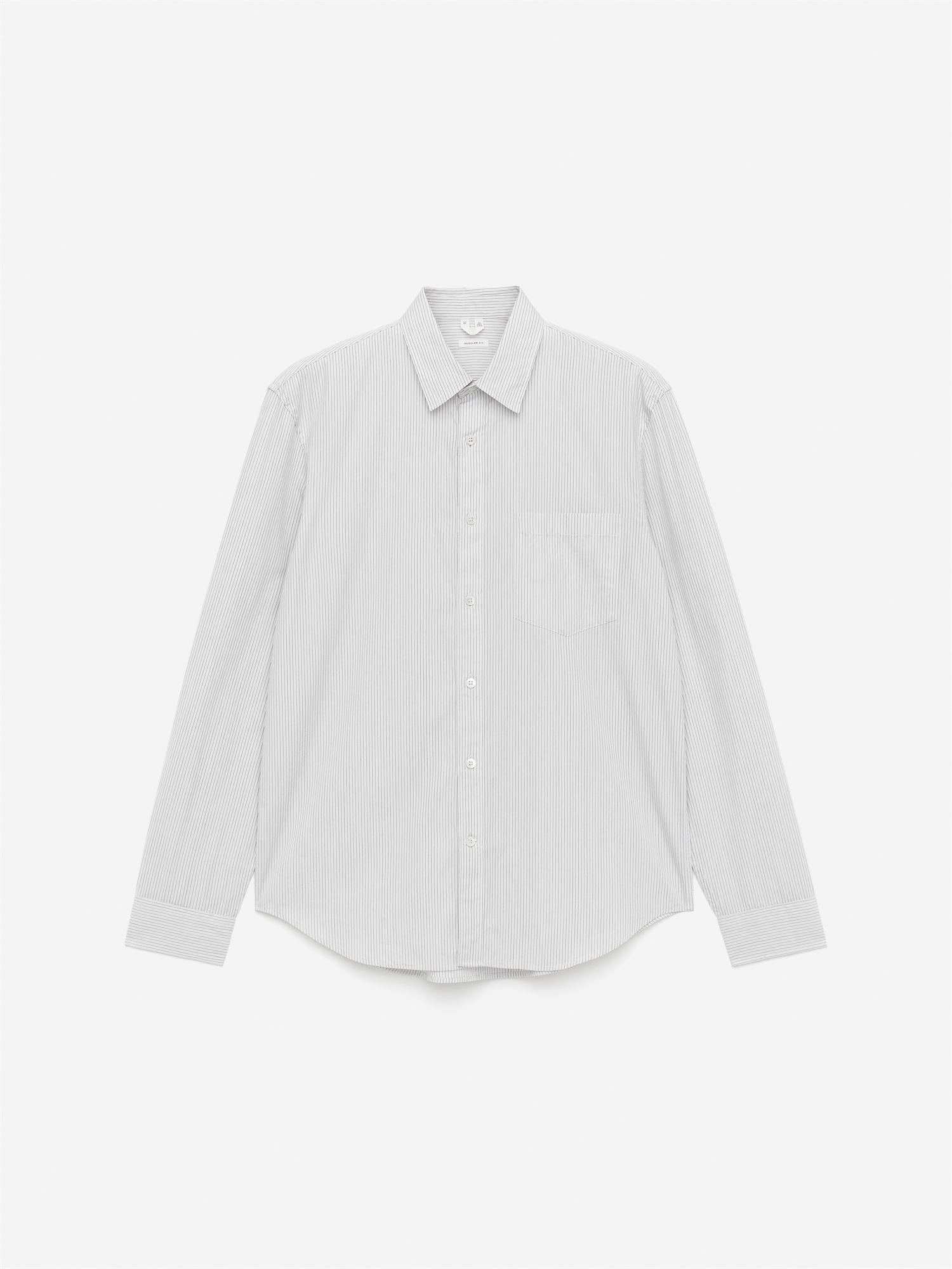 Рубашка с длинными рукавами из хлопкового поплина с узором из полос, окрашенных пряжей. Заостренный воротник и один нагрудный карман. Изогнутая линия подола. Обычный крой.