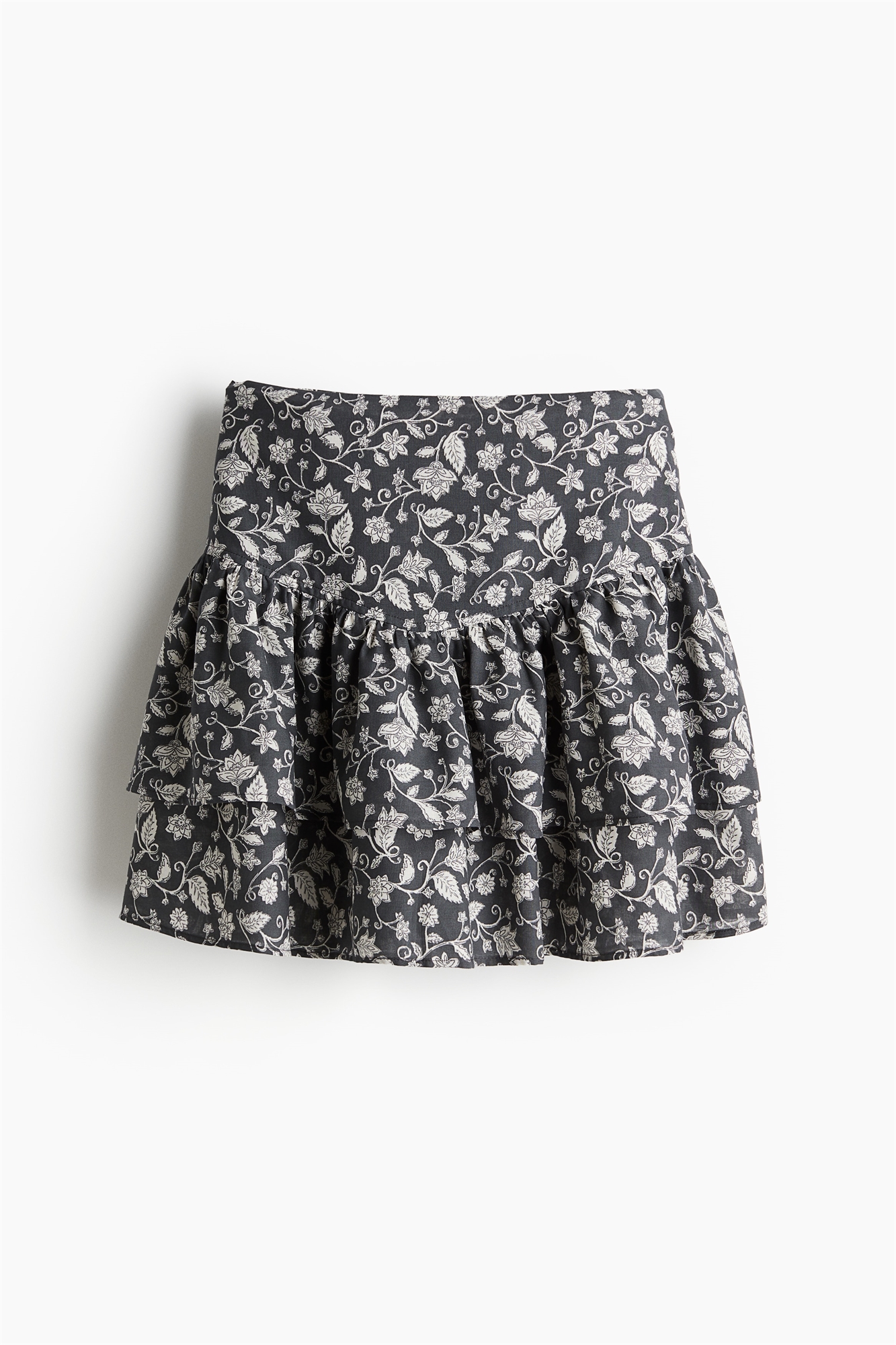 Короткая юбка из хлопкового полотна с потайной застежкой-молнией сзади. Сборчатый шов на бедрах и ярусы для придания объема. Без подкладки.