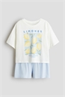 Пижама из мягкого хлопкового джерси. Топ с круглым вырезом, спущенными плечами и короткими рукавами. Шорты с эластичной талией.