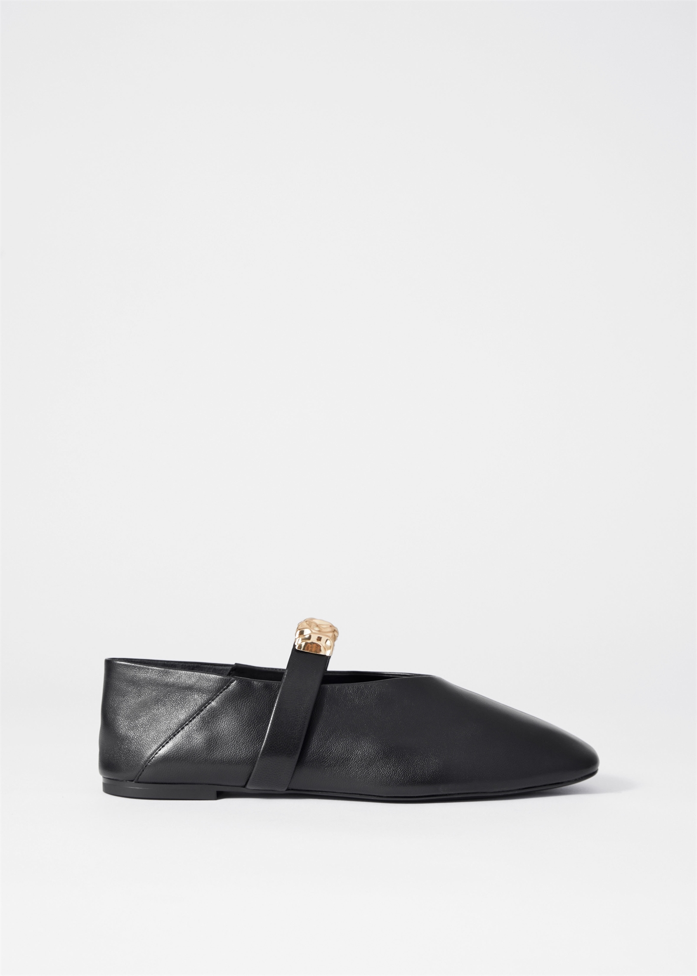 Эта современная версия балеток Мэри-Джейн - бесспорный шик. Созданные из эластичной кожи, они имеют круглый носок и украшены скульптурными золотистыми украшениями на небольшом каблуке.