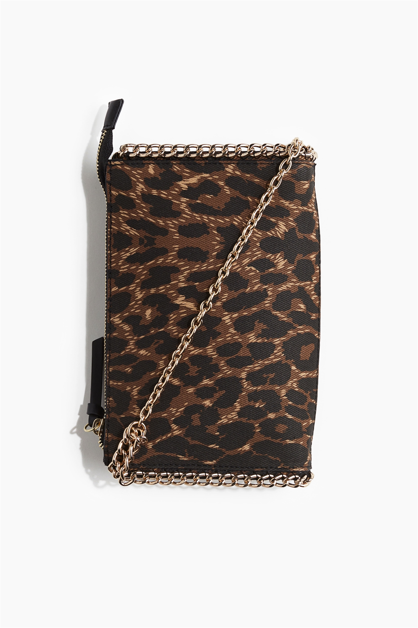 Небольшая сумка кроссбоди из узорчатого хлопкового холста с застежкой-молнией в верхней части. Декоративные металлические цепочки по бокам и плечевой ремень с металлической цепочкой. На подкладке.