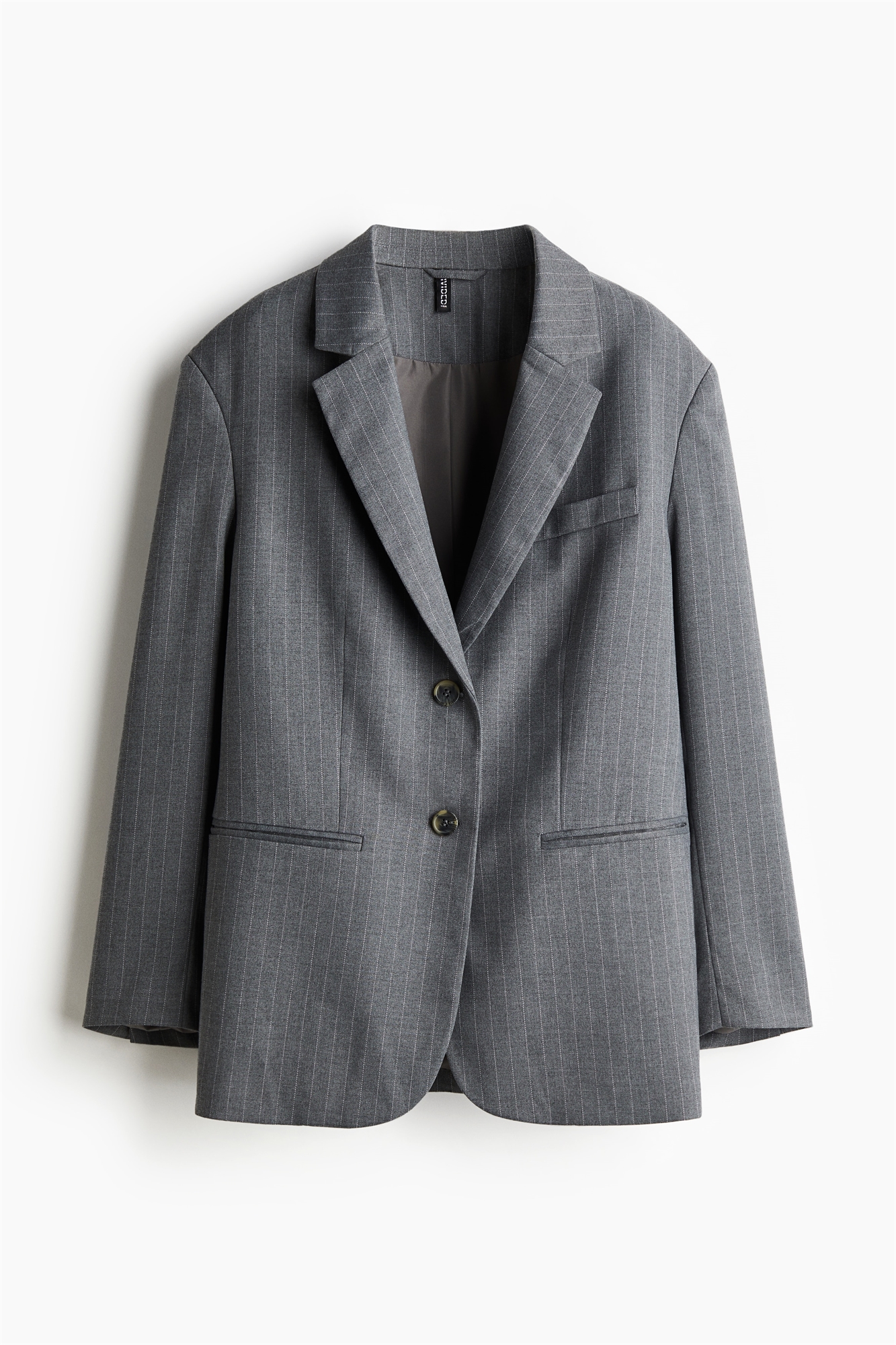 Однобортный блейзер оверсайз из саржи с лацканами с вырезом и пуговицами спереди. Нагрудный карман, плечевые накладки и манжеты на пуговицах. Прорезные передние карманы и один задний вентиляционный проход. На подкладке.