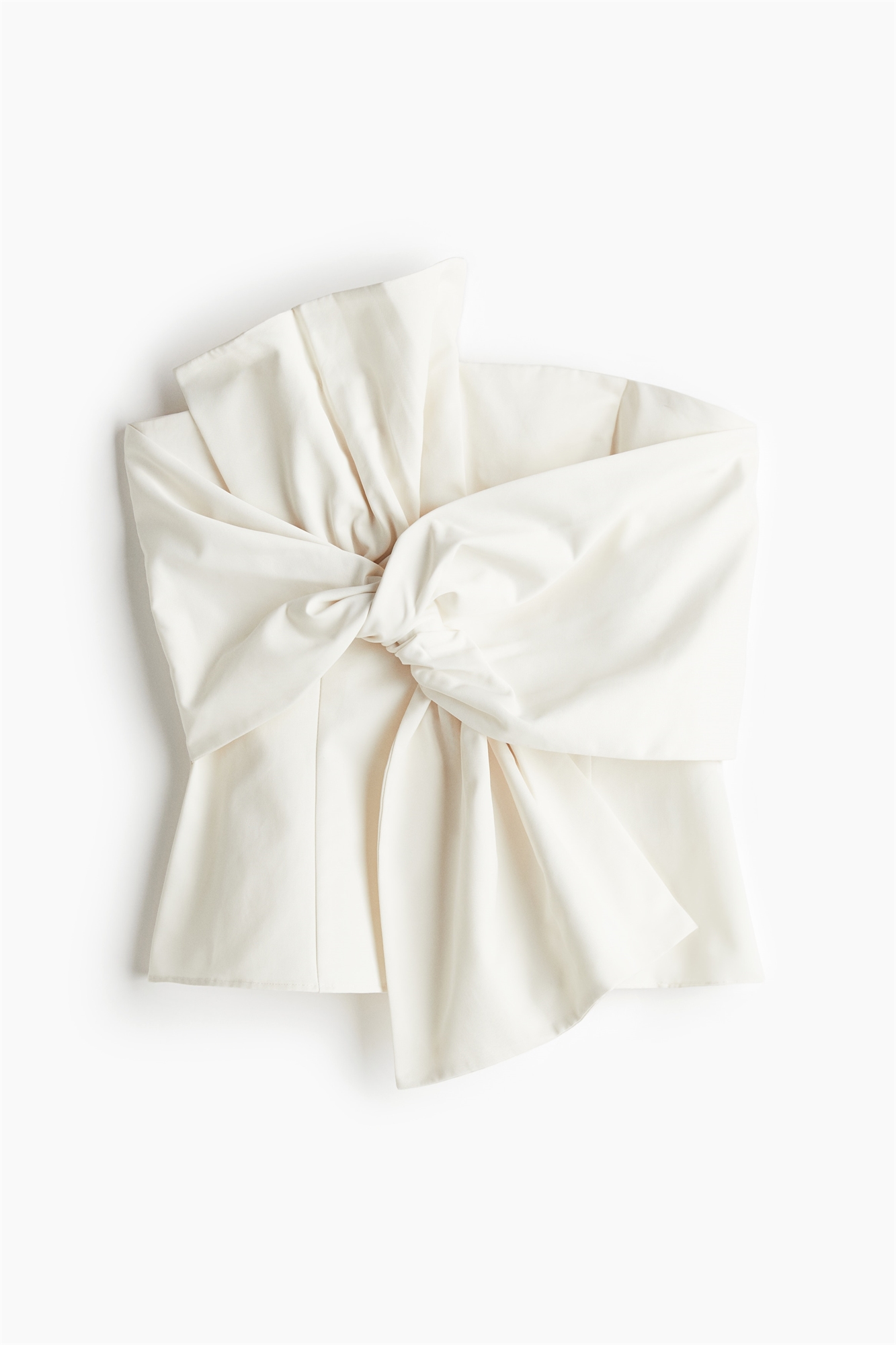 Топ-бандо из саржи с большим бантом спереди и потайной застежкой-молнией сзади.