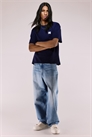 Футболка из принтованного хлопкового джерси средней плотности с ребристой отделкой горловины, спущенными плечами и прямым покроем подола. Свободный крой для объемного, но не чрезмерно большого силуэта.