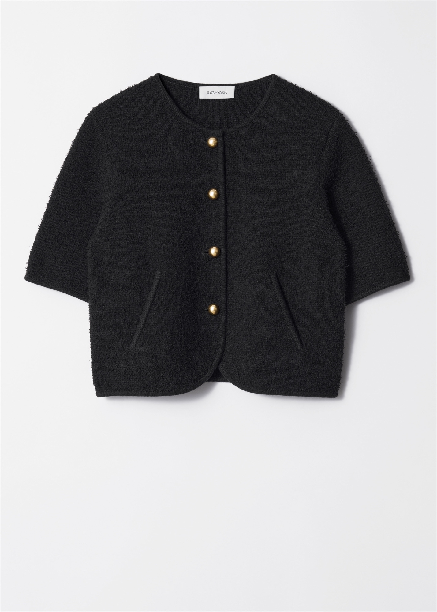 Трикотажный кардиган с короткими рукавами и обрезанной талией, с фактурной отделкой и украшенный декоративными пуговицами. • Regular fit • Двойные косые передние карманы • Короткая длина Длина кардигана: 51 см / 20" (размер S)
