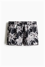 Шорты для плавания с узорчатым плетением, эластичным материалом и завязкой на талии, боковыми карманами, открытым задним карманом и ногами, заканчивающимися выше колен, с небольшим разрезом по бокам. Внутренние шорты из мягкой сетки.