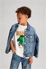 Футболка оверсайз из мягкого хлопкового джерси с принтом спереди. Круглый вырез с ребристой отделкой и спущенные плечи.
