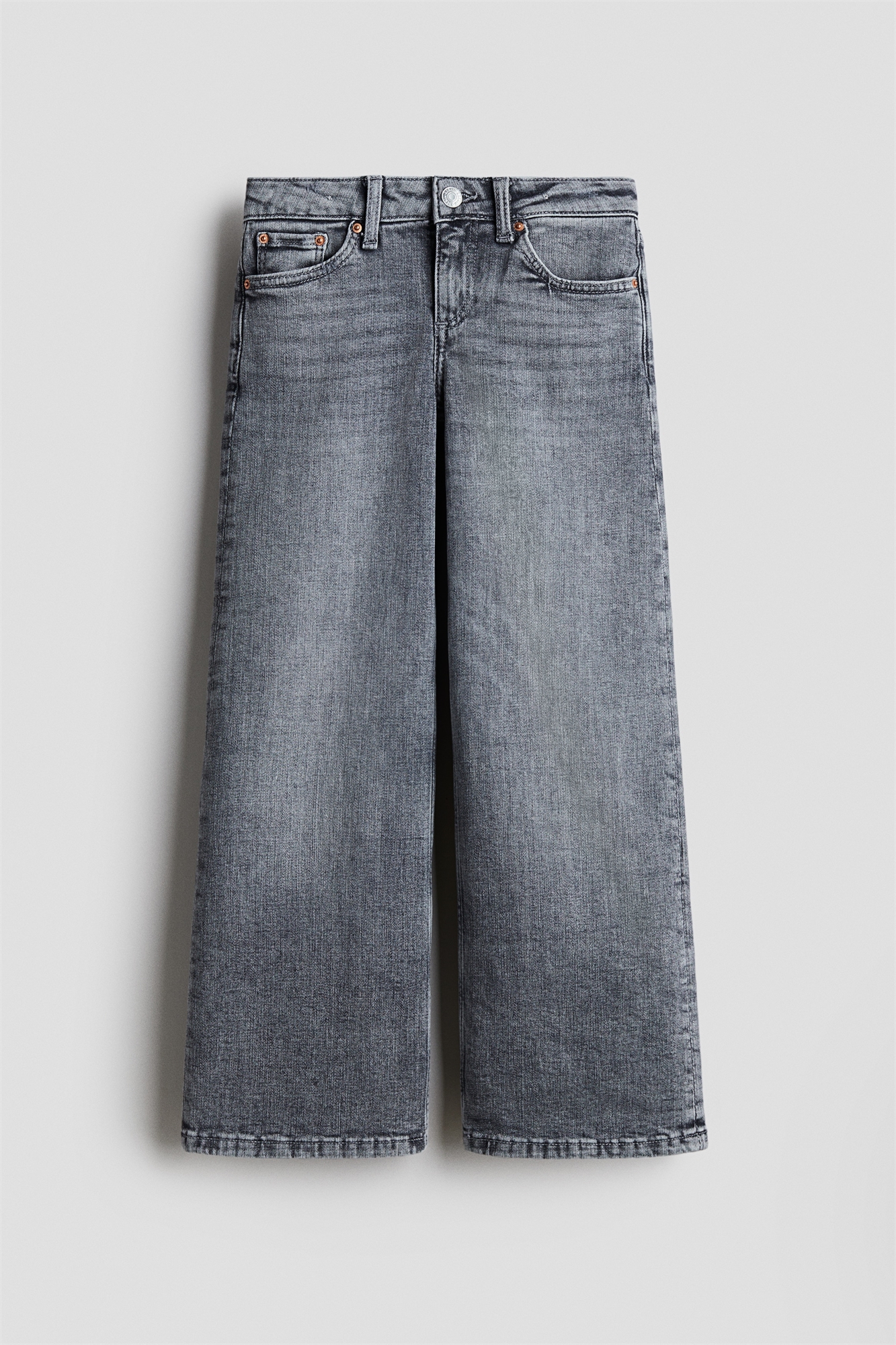 Джинсы с 5 карманами из эластичного денима с широкими штанинами. Заниженная талия с регулируемой резинкой и ширинка на молнии с пуговицей.