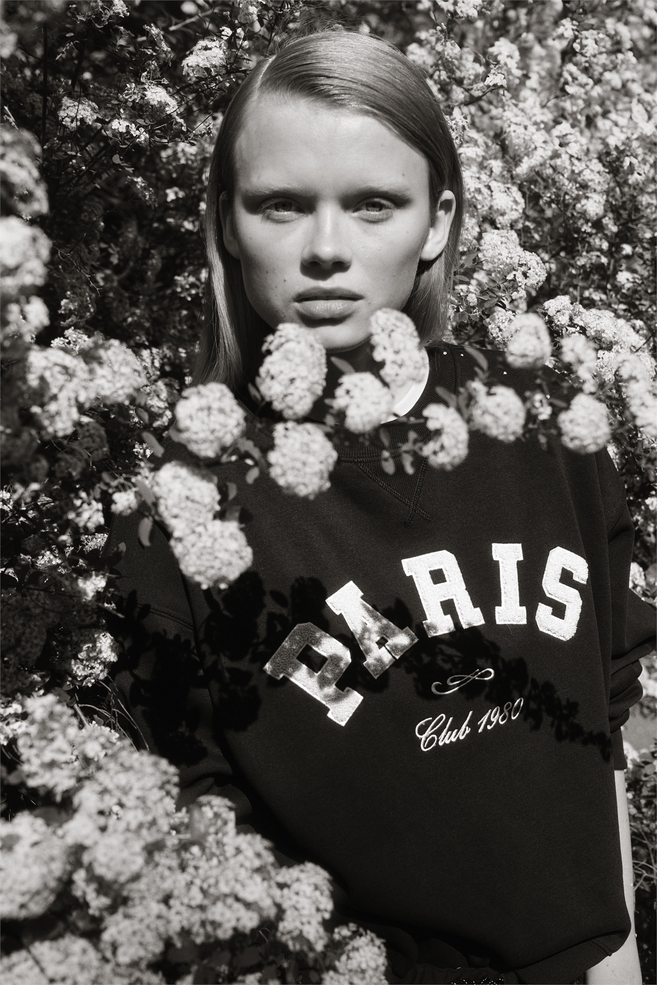 Топ оверсайз из толстовки с мягким начесом внутри и текстовым мотивом на груди. Спущенные плечи, длинные рукава и окантовка по вырезу горловины, манжетам и подолу.