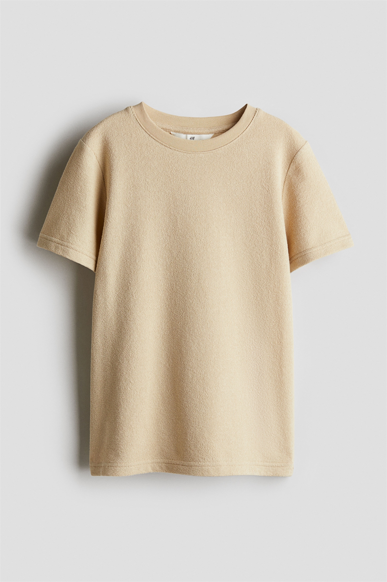 Футболка из мягкого фактурного джерси из смеси хлопка. Круглый вырез с ребристой отделкой и прямой подол.